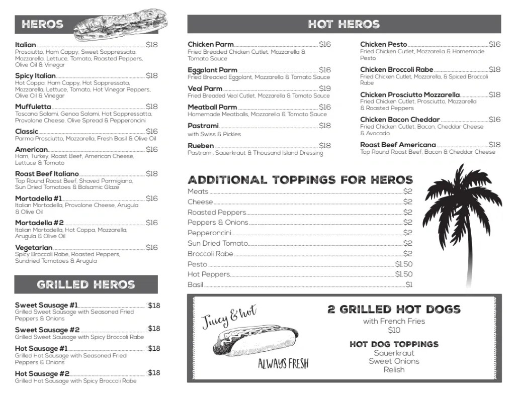 They also have a delightful selection of sandwiches – which they call hero’s…I grew up calling them “hoagies” or “Submarine sandwiches” but whatever you call them, what a selection to choose from!