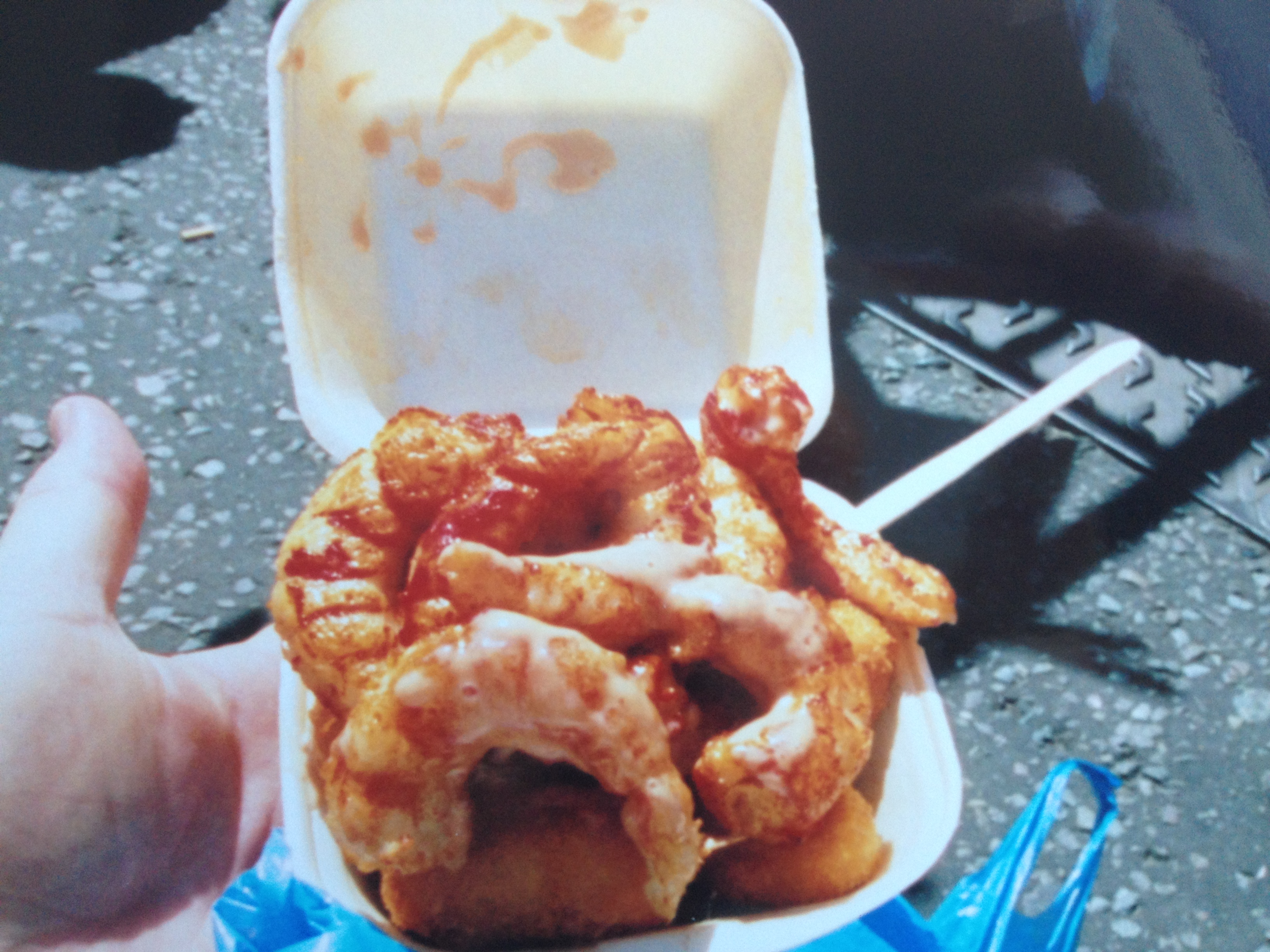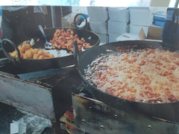 They were serving delicious deep fried shrimp and crab claws – that’s right, DEEP FRIED SHRIMP AND CRAB CLAWS…boiled up in this fiery cauldron of grease: