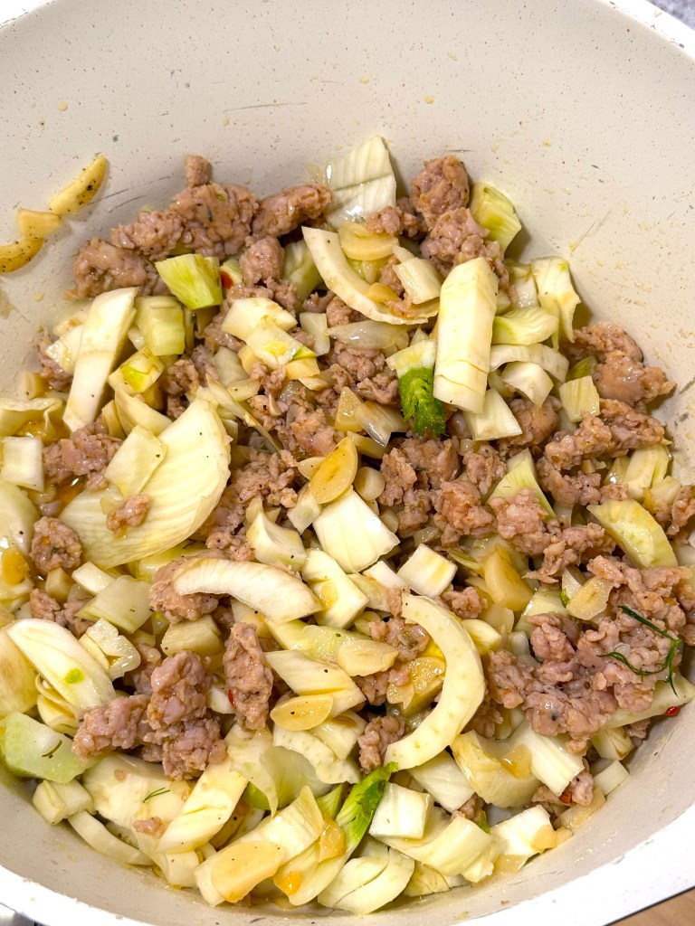 Why I think she felt that way is all part of this story: it began when I saw this recipe in The Washington Post for a “one post fennel sausage pasta” dish! I’ve made one pot dishes before and will share those recipes later, but first, let’s cook this one and see where the breakthrough happened!