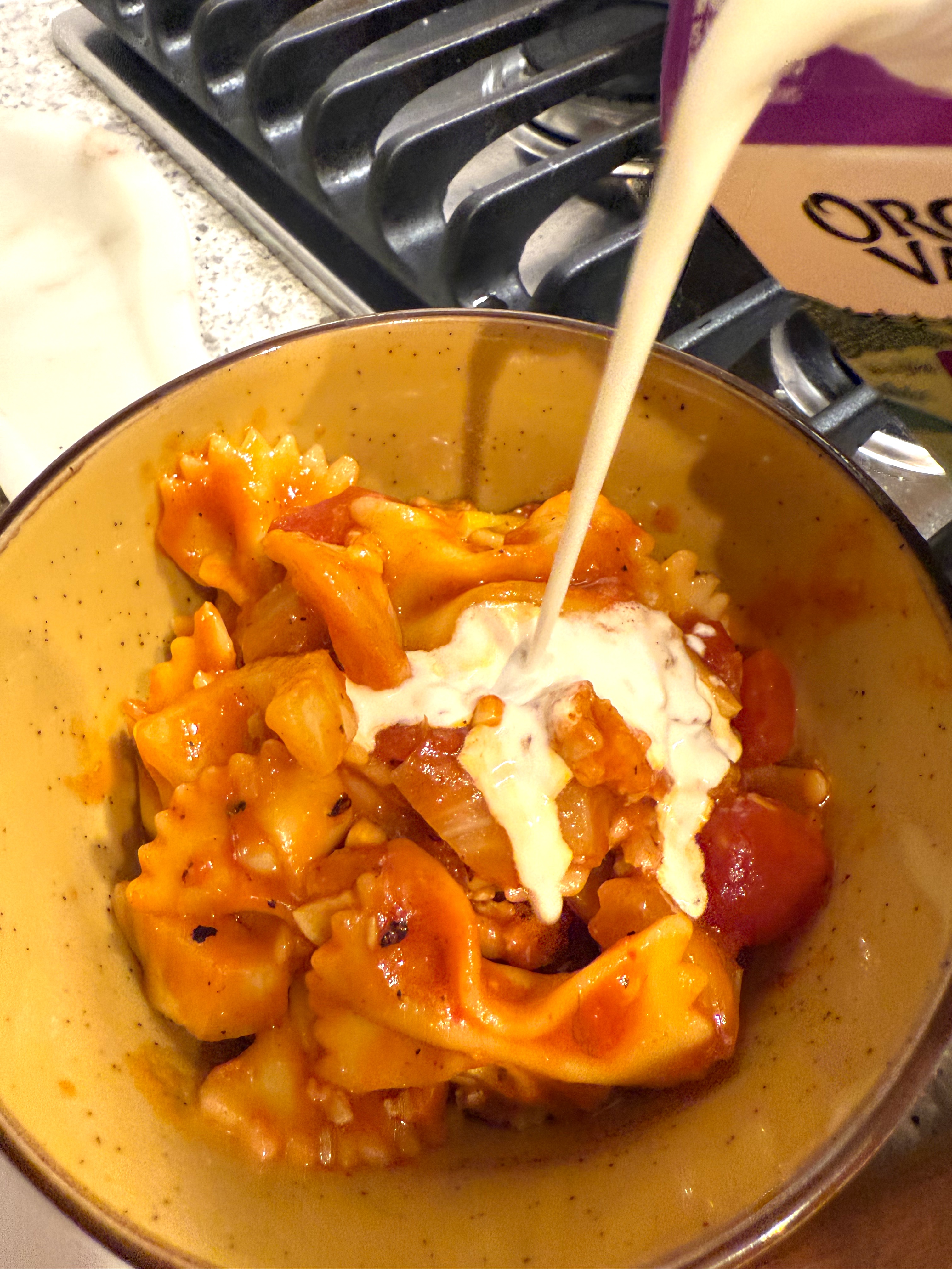 Next I added some half and half cream to the dish…but only mine, as Alex isn’t a fan: