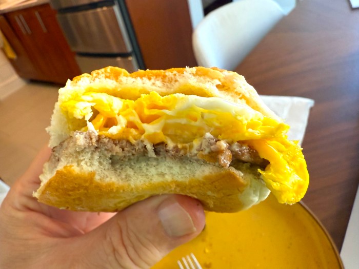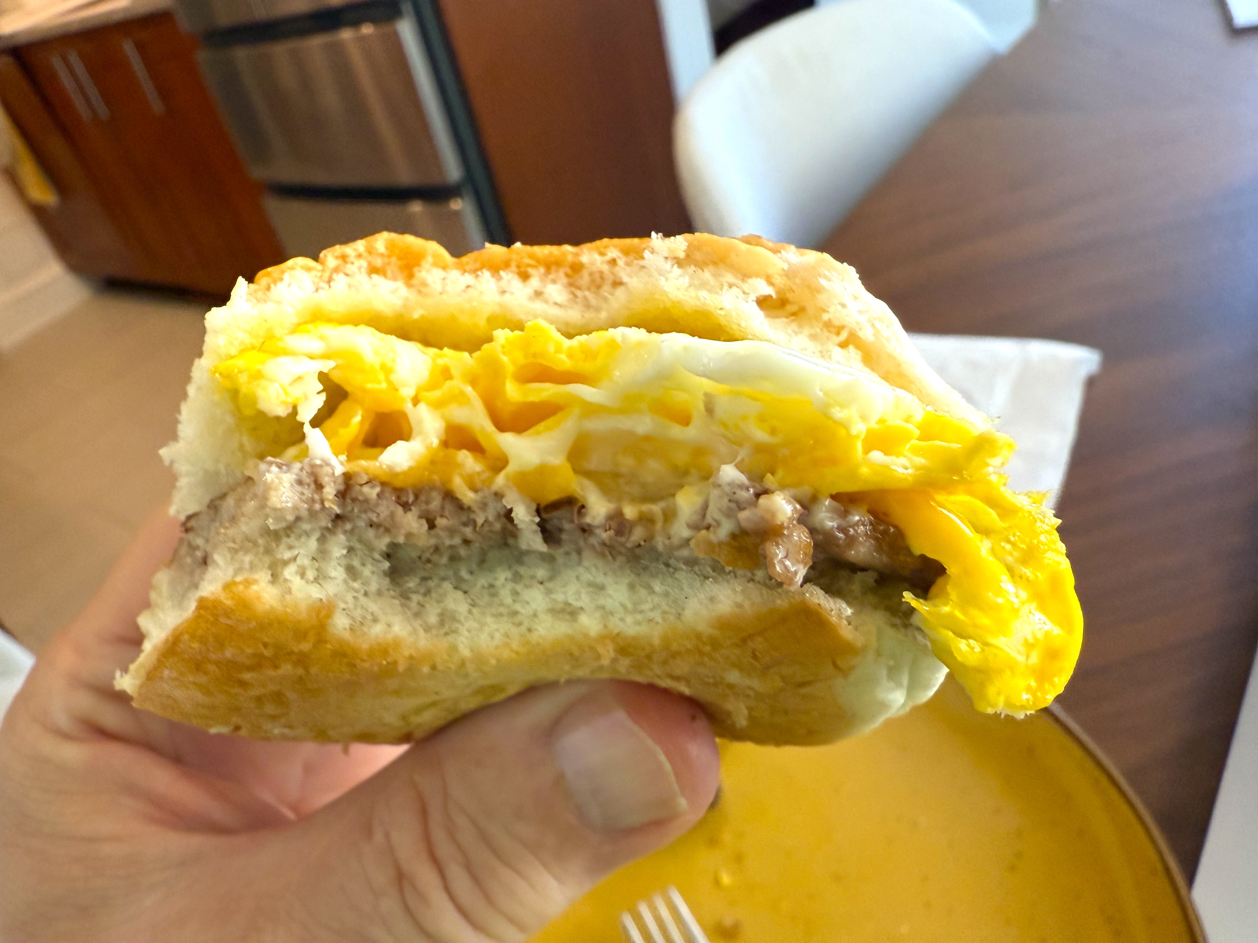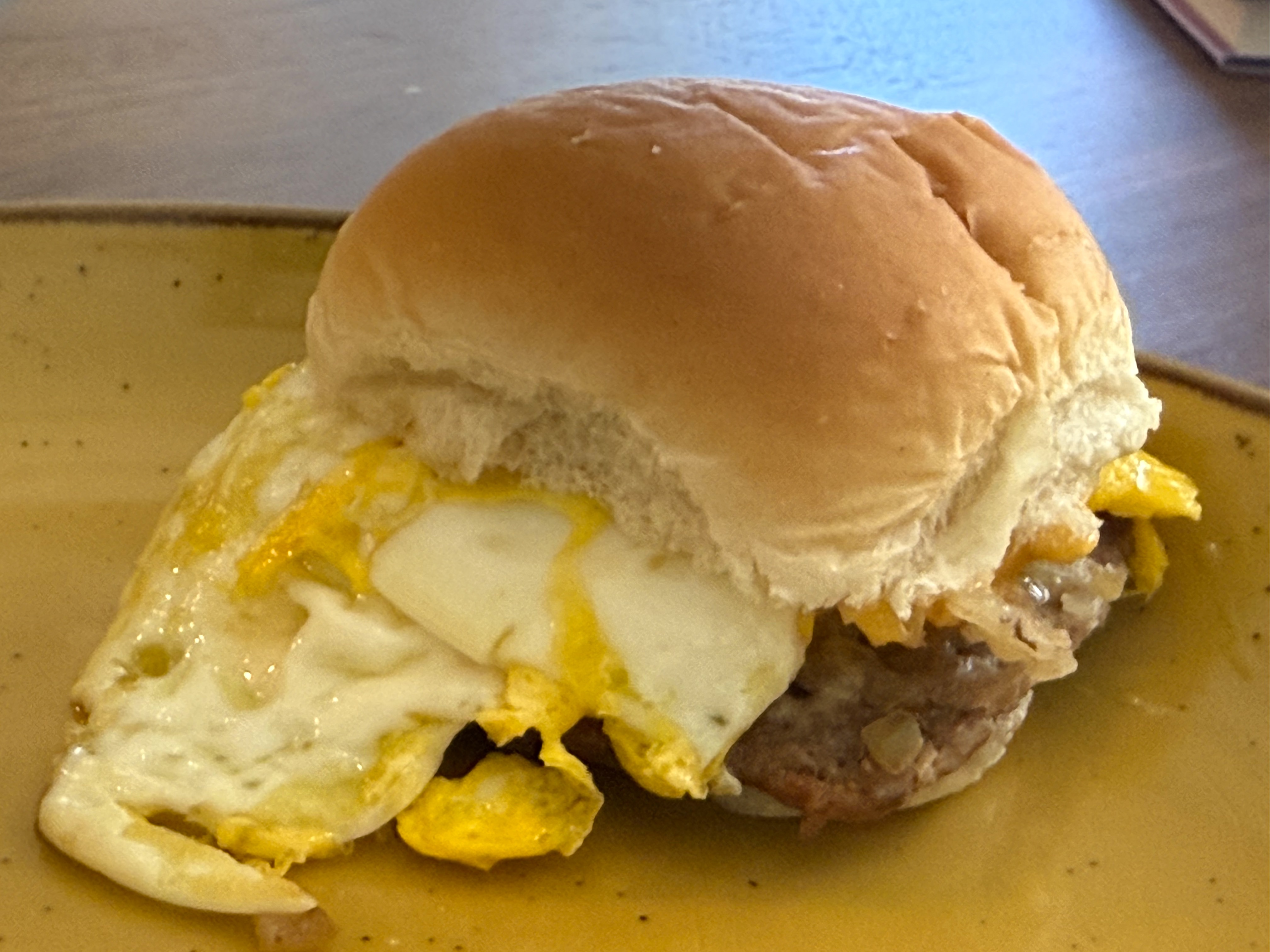 Behold the breakfast slider – my own invention, and I am about to show you why you should stick this in your mouth and bite down hard!