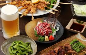 Izakaya offer a wide range of foods. Here are dishes that are available at most Izakaya: sashimi platters, karaage(fried chicken), yakisoba noodles and edamame (green pod soybeans), plus all sorts of grilled meat skewers, which pair well with beer and sake.
