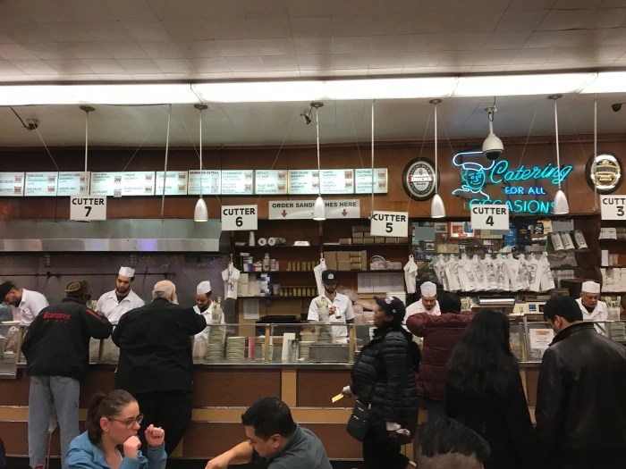 Eating at Katz’s Deli is a great New York deli experience: you go up to your own “carver”, who builds you a massively sized sandwich using fresh pastrami or corned beef – or any sandwich you want from their massive menu!