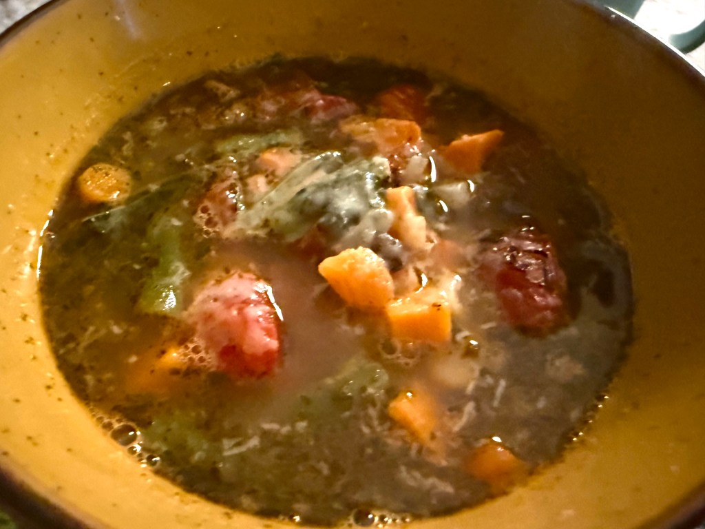 Again, while I offered an option for sausage, it’s a great vegetable soup without it, and the originator of this delicious recipe would never add sausage – their website lives here: