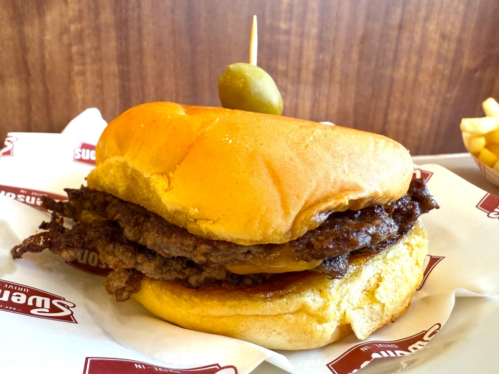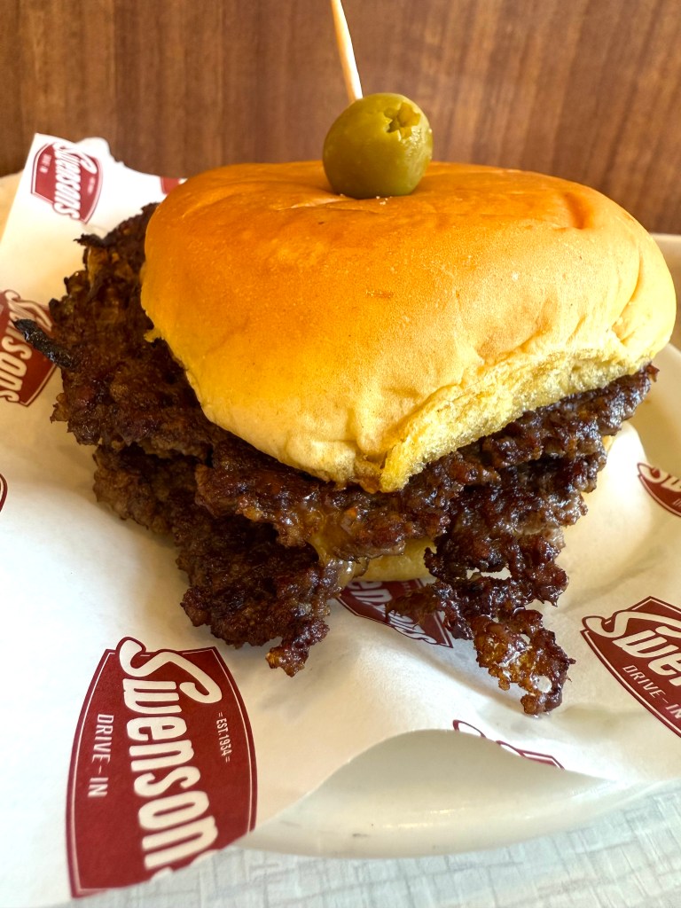 As you can see, the burger is served in a Swenson’s Drive-In wrapper, what a great touch!