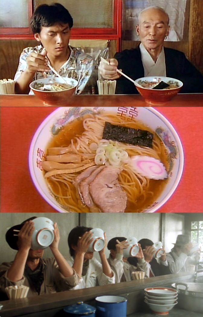 These scenes are from the great film “Tampopo” – a film that loves ramen noodles! Click here for recipes from the movie: