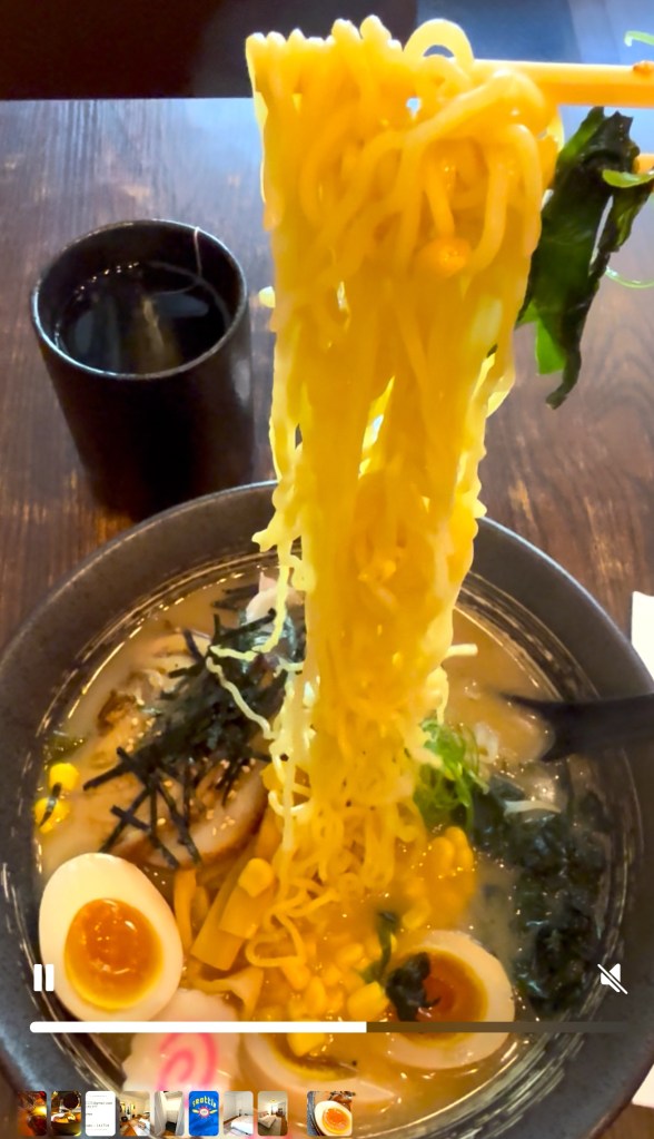 This is my ramen lunch from Monday! I used the portrait mode on my phone to capture the noodles rising high above the bowl below…for those who don’t eat a lot of ramen noodles dishes, here’s a primer.
