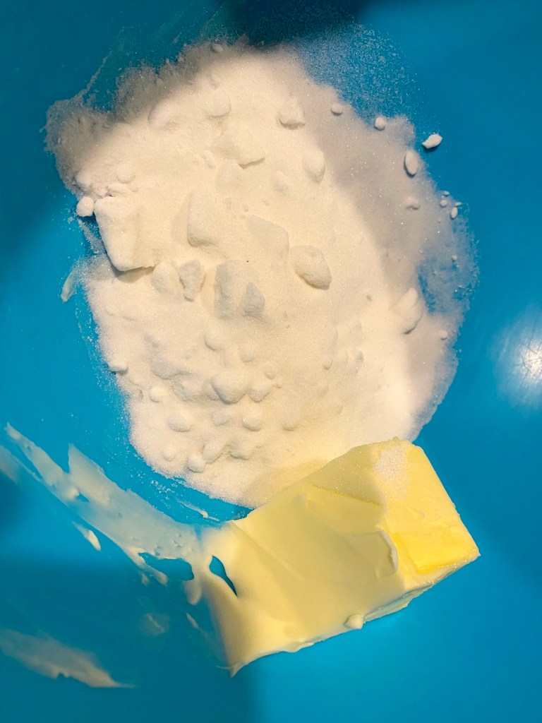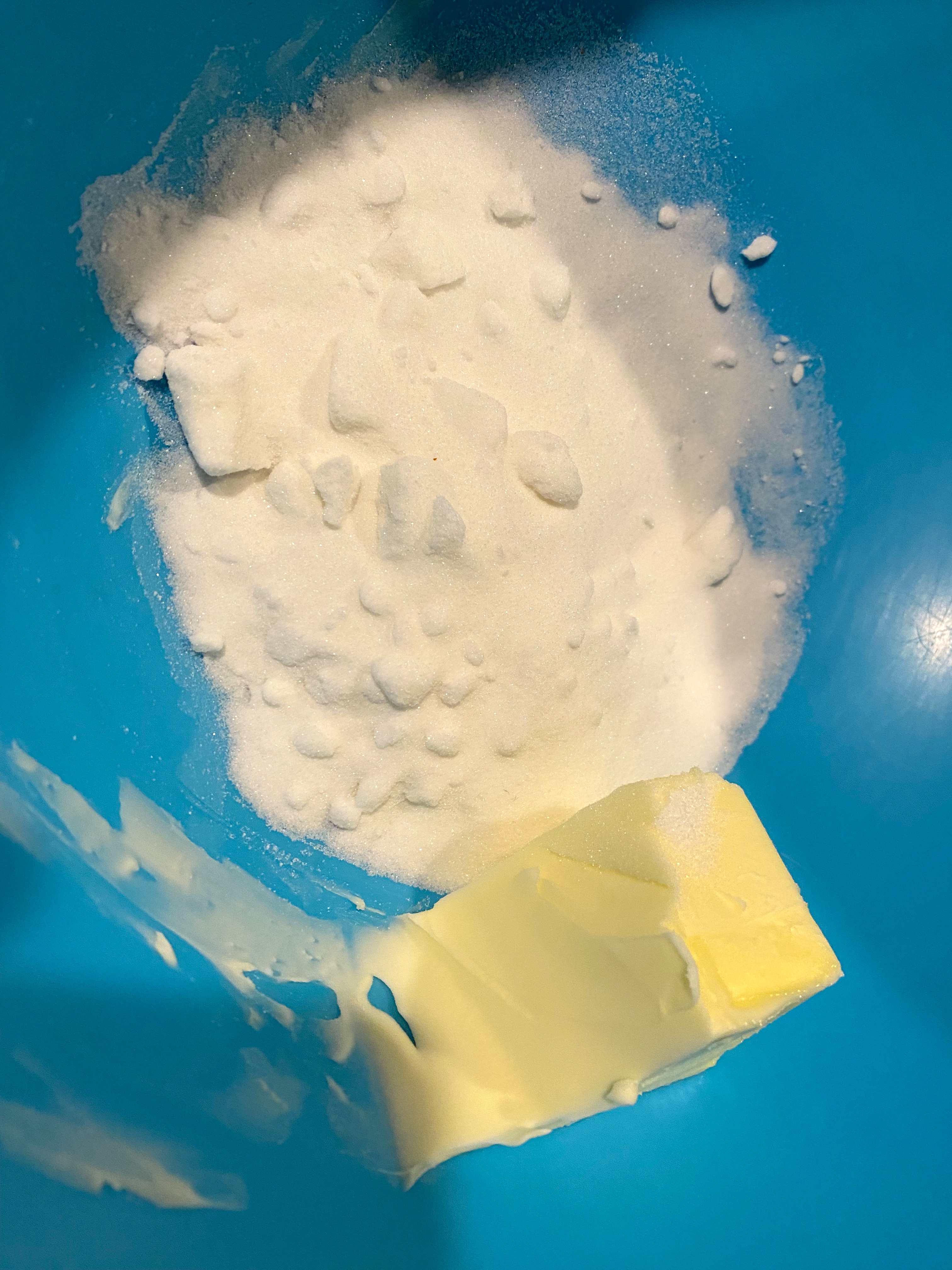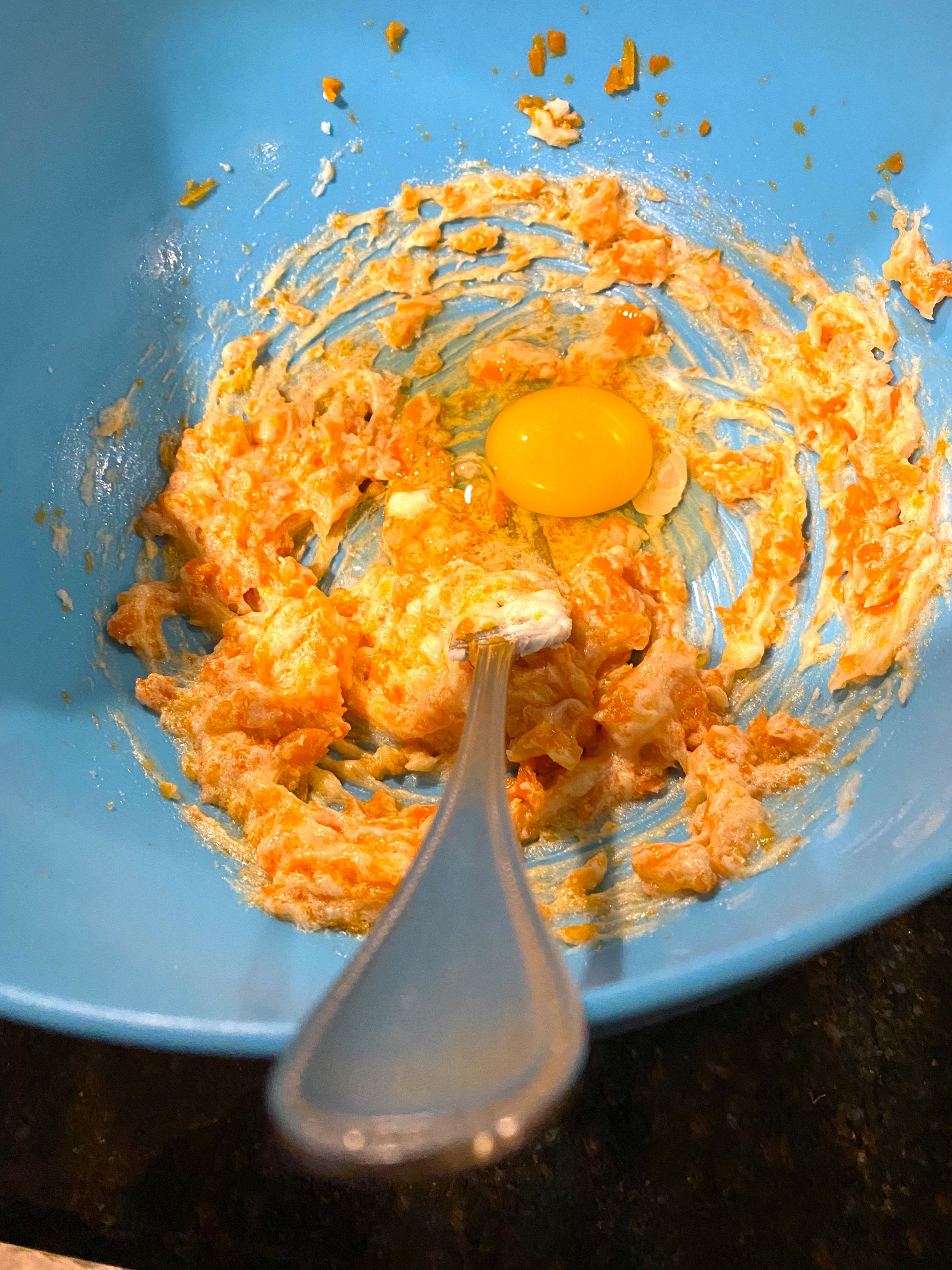 In a large bowl, combine the sugar and butter until smooth, then add your blended carrots…