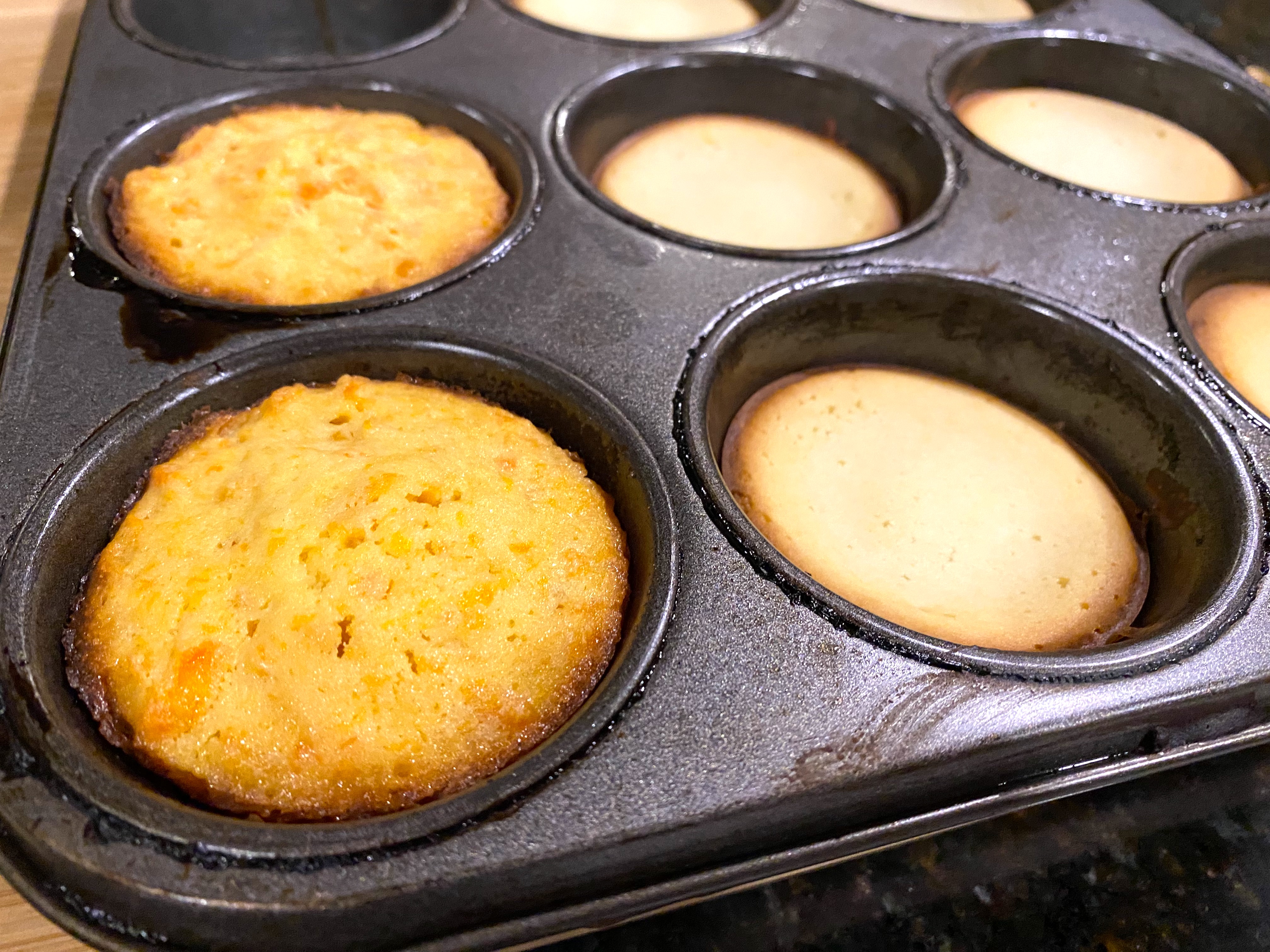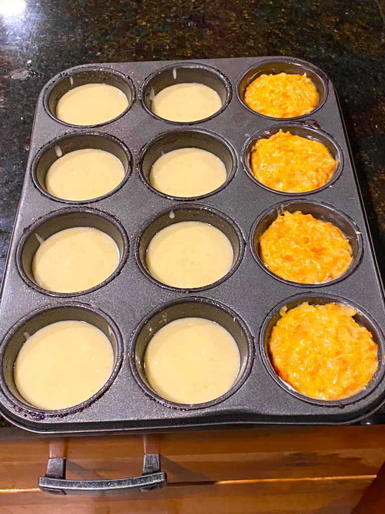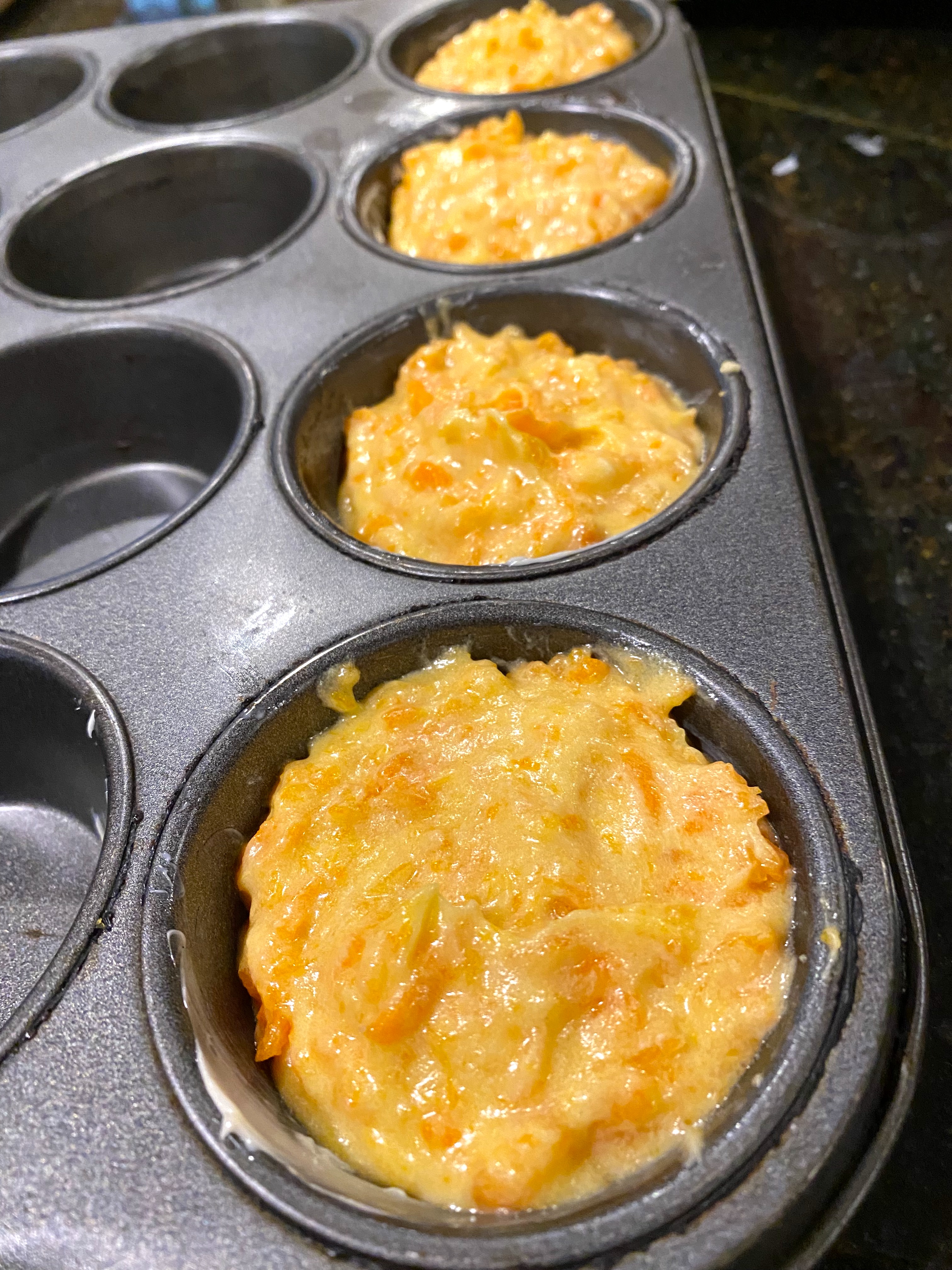 Pour the mixture into a greased muffin tin, filling each cup to a little more than half full…in hindsight I would have done them a bit more full…
