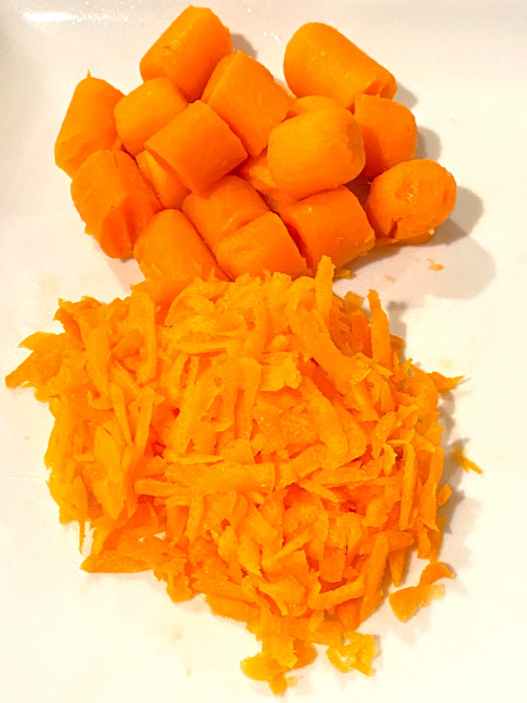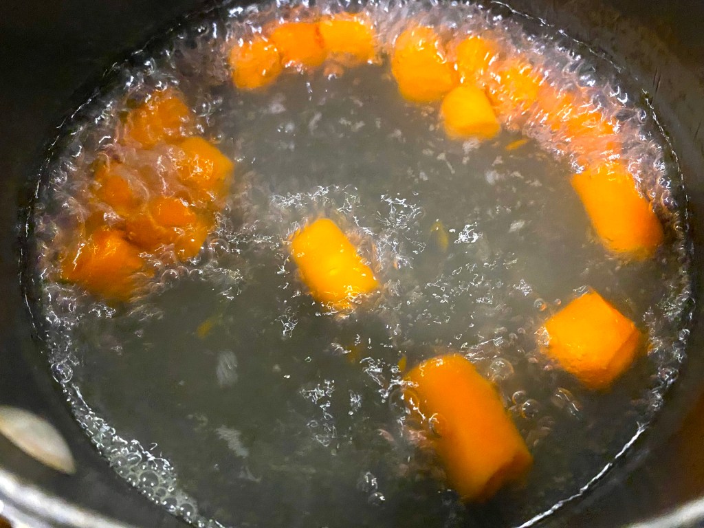 Boil the chopped carrots until soft…then drain and blend them with a hand mixer and set aside.