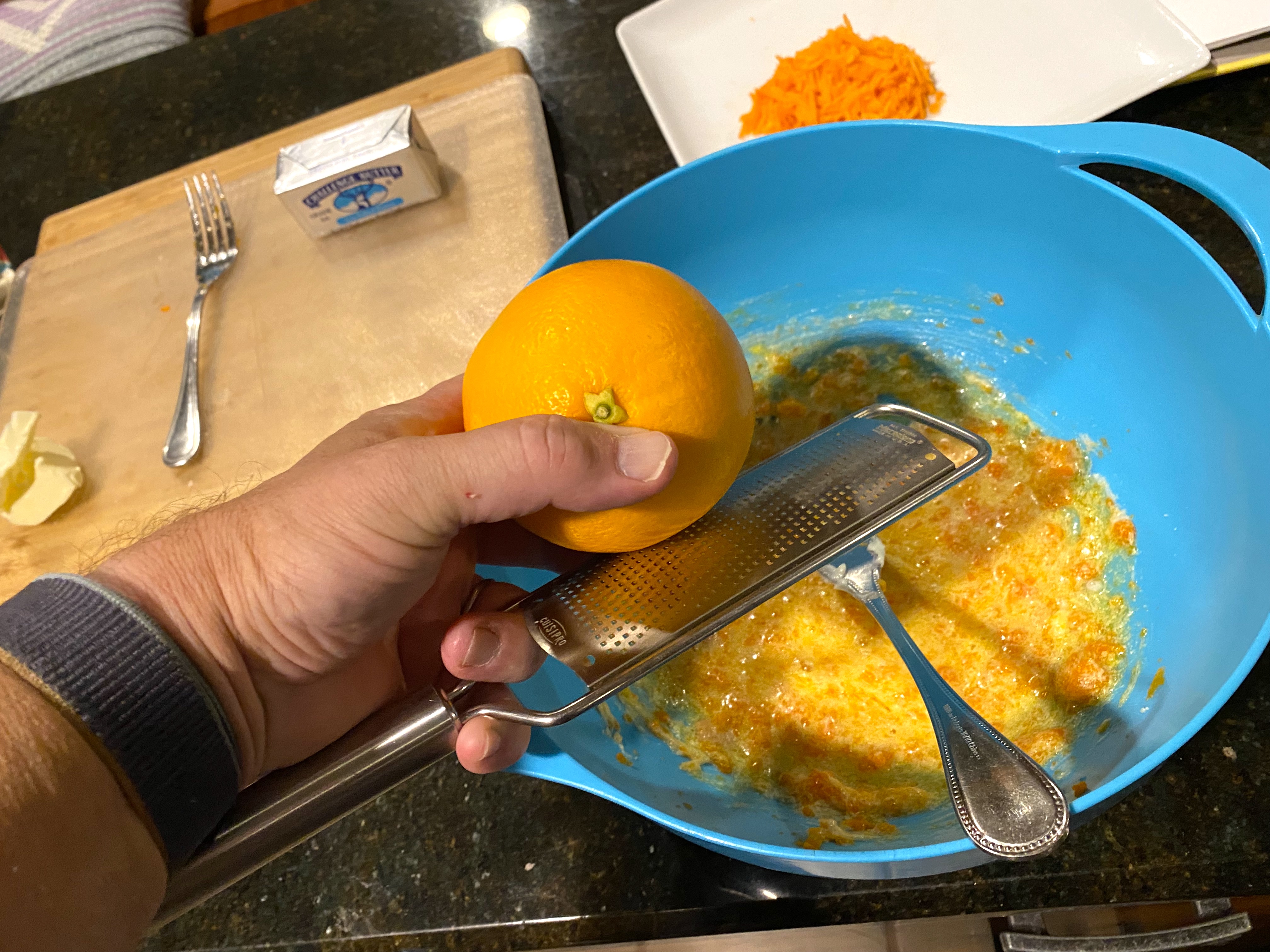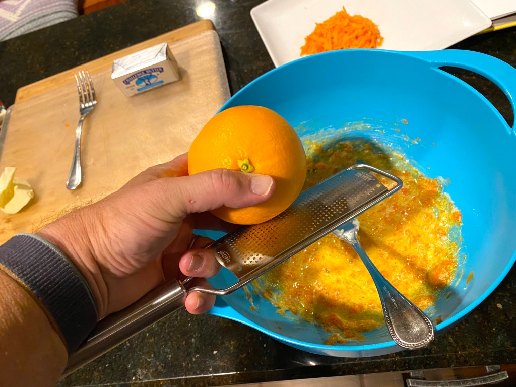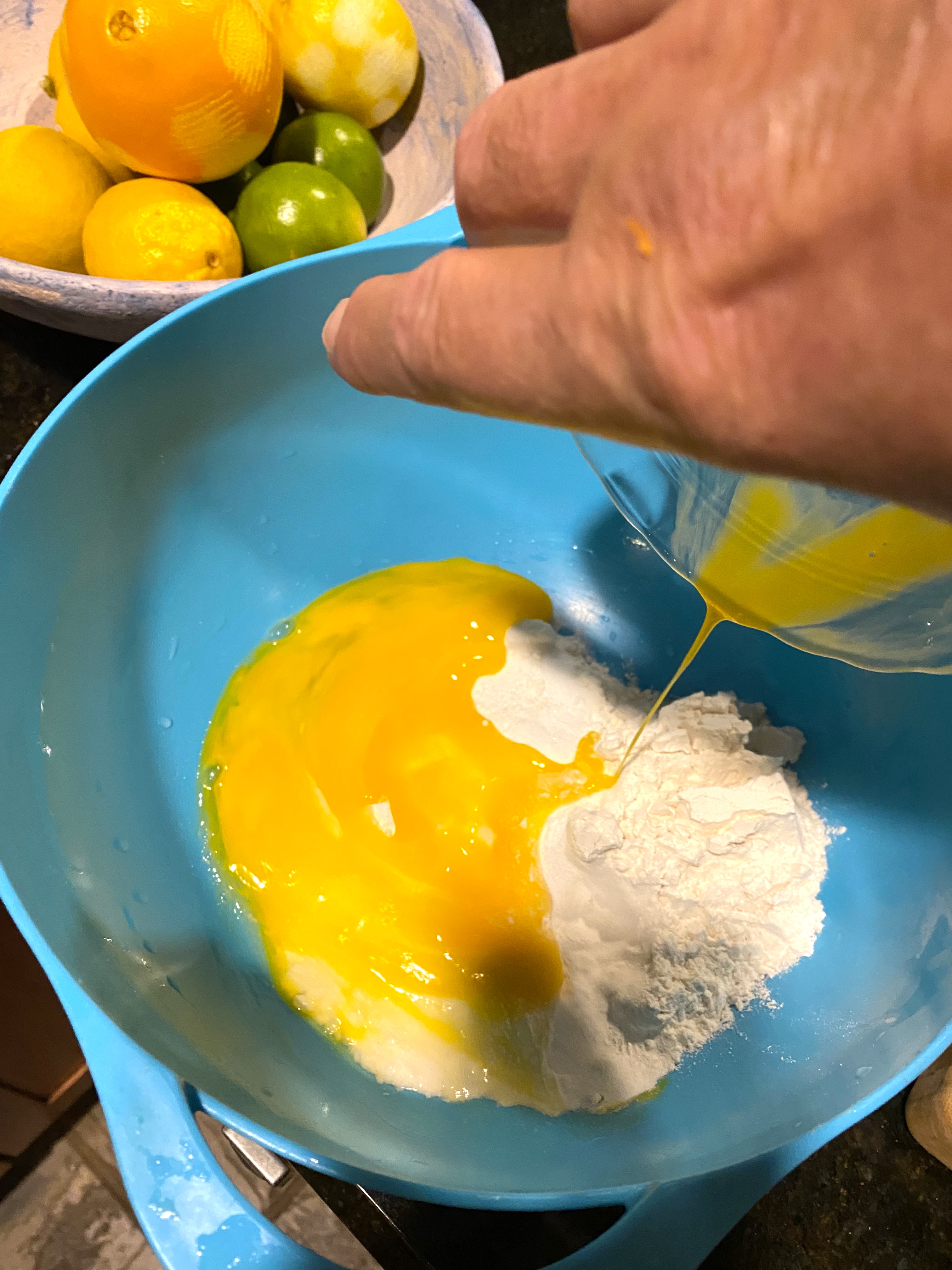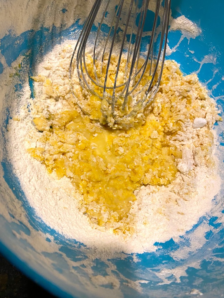 Gently add the lemon and orange zest, combine your mix and it will look like this…