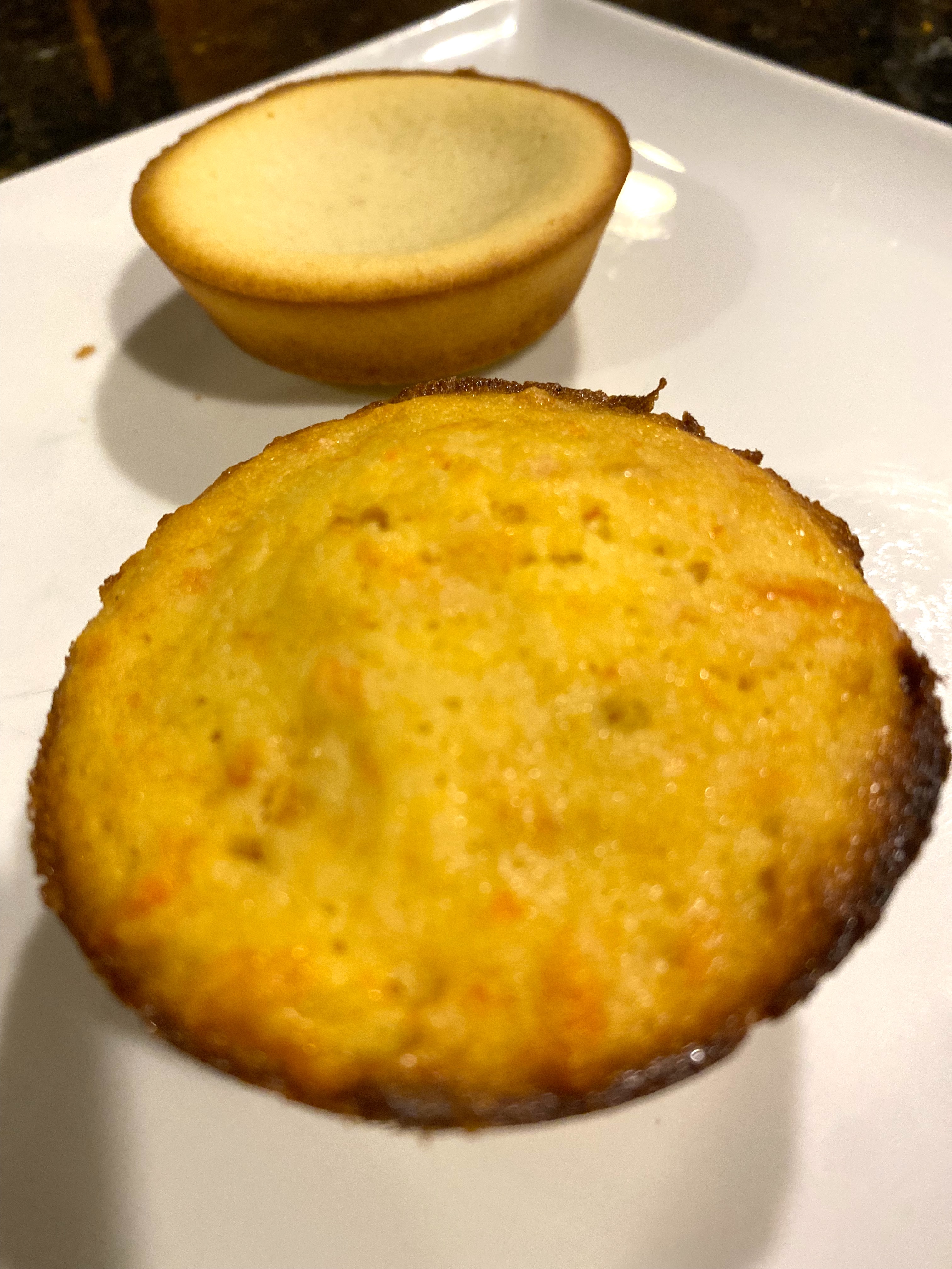 Well, the carrot cheesecake was delicious, with a creaminess from the cream cheese I think really helped – but the milk tarts were creamy and delicious as well – not too sweet – and a nice texture more firm than custard…and if I knew how to caramelize the top a bit, they are closest to a “pasteis de nada”…