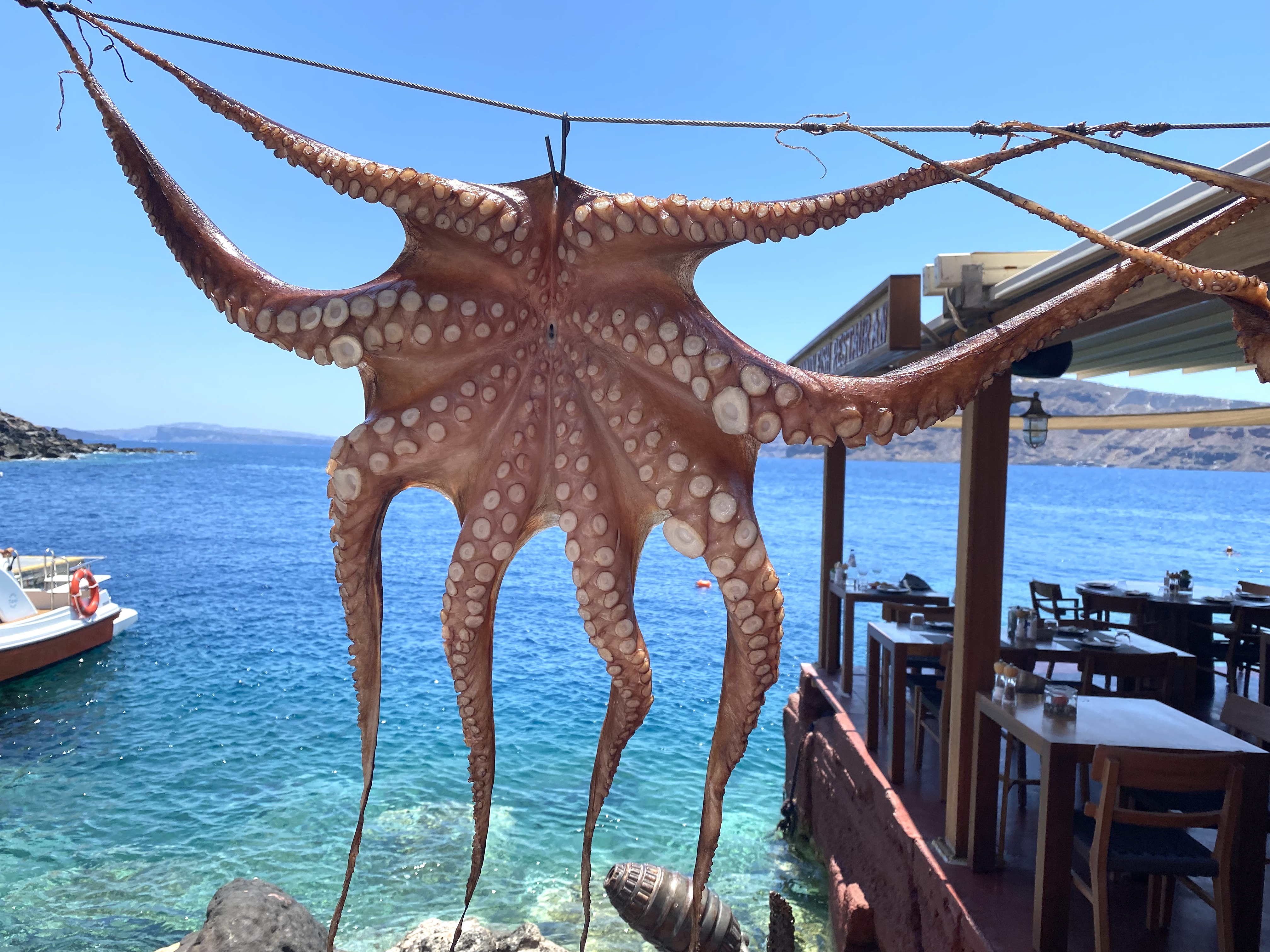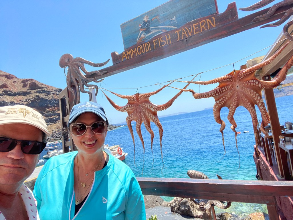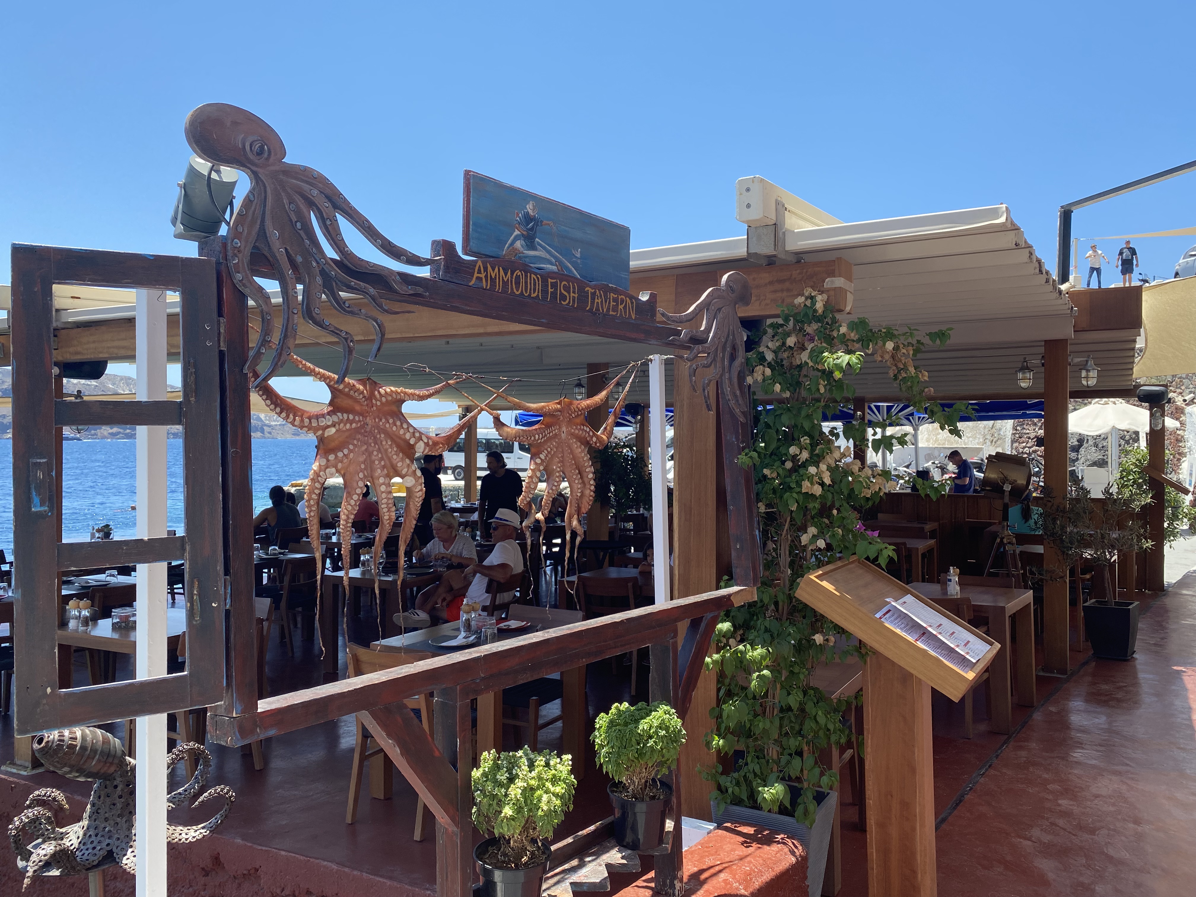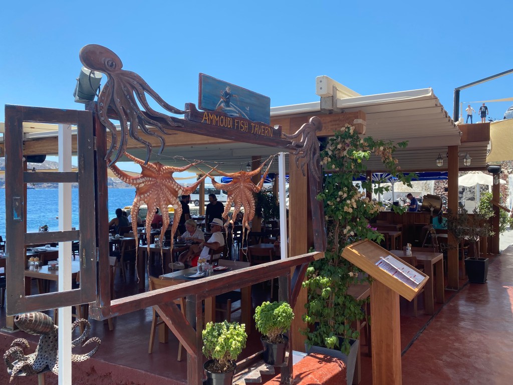 Grilled octopus is a delicacy here, and this is where they hang them out to dry – we were told that Ammoudi Fish Tavern did it the best so it was time for lunch!