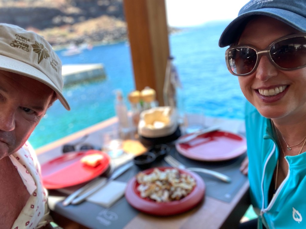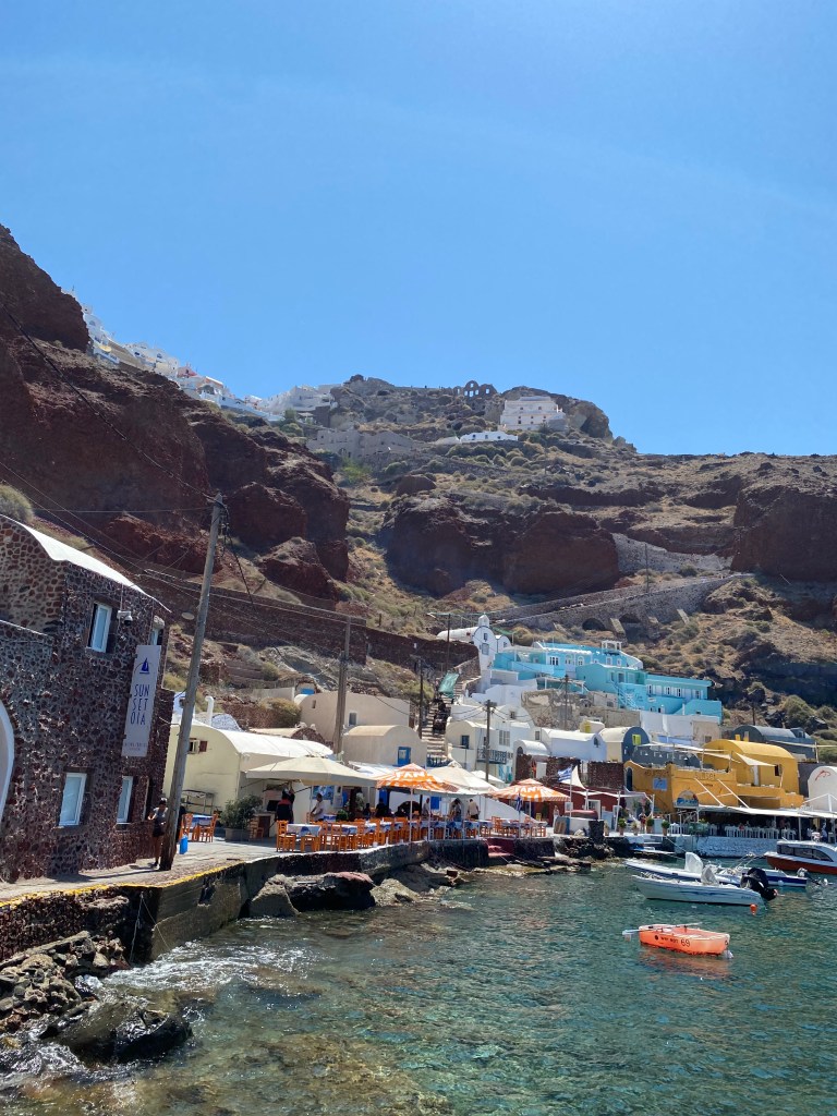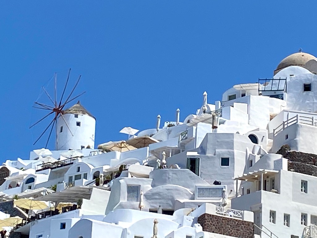 The town is pronounced “E-Uh” with the emphasis on the E, and the hillside is filled with white-washed homes and a vintage windmill or two! At the very bottom of the town is an incredible restaurant we were told to eat at – oh, there’s just one catch: