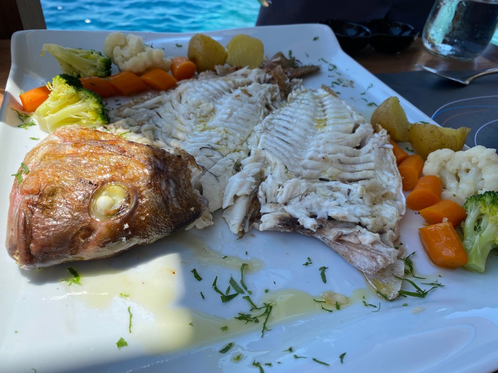 Now, as for the main course – they had some freshly caught fish that Alex perused, and the Waiter recommended a very special catch…but we can’t remember which one it was!