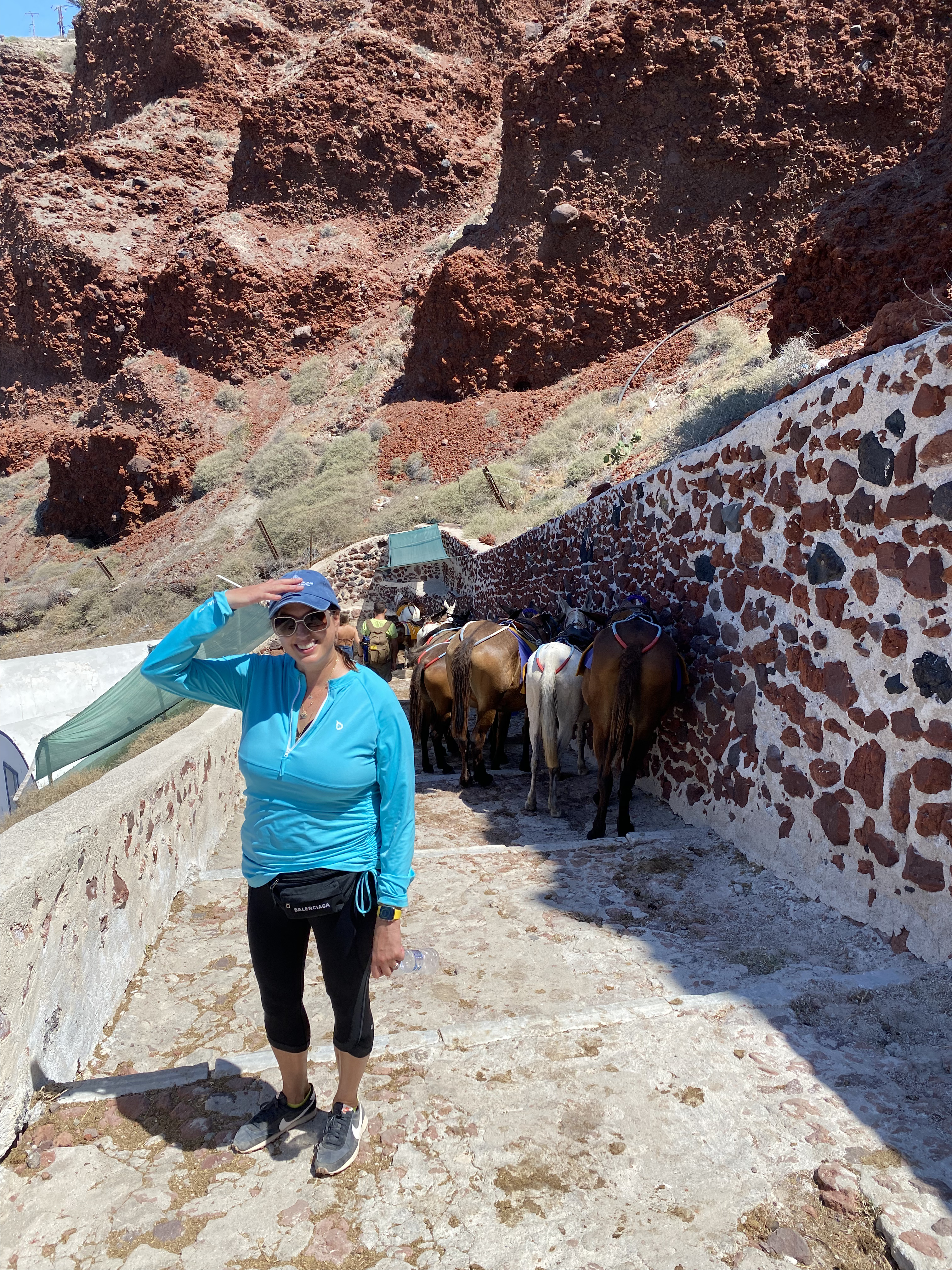 You can go down on foot, but some decide to rent donkeys. They are quite polarizing here: many feel the animals are not treated well, others see them as part of the town’s charm. We walked down on our own.