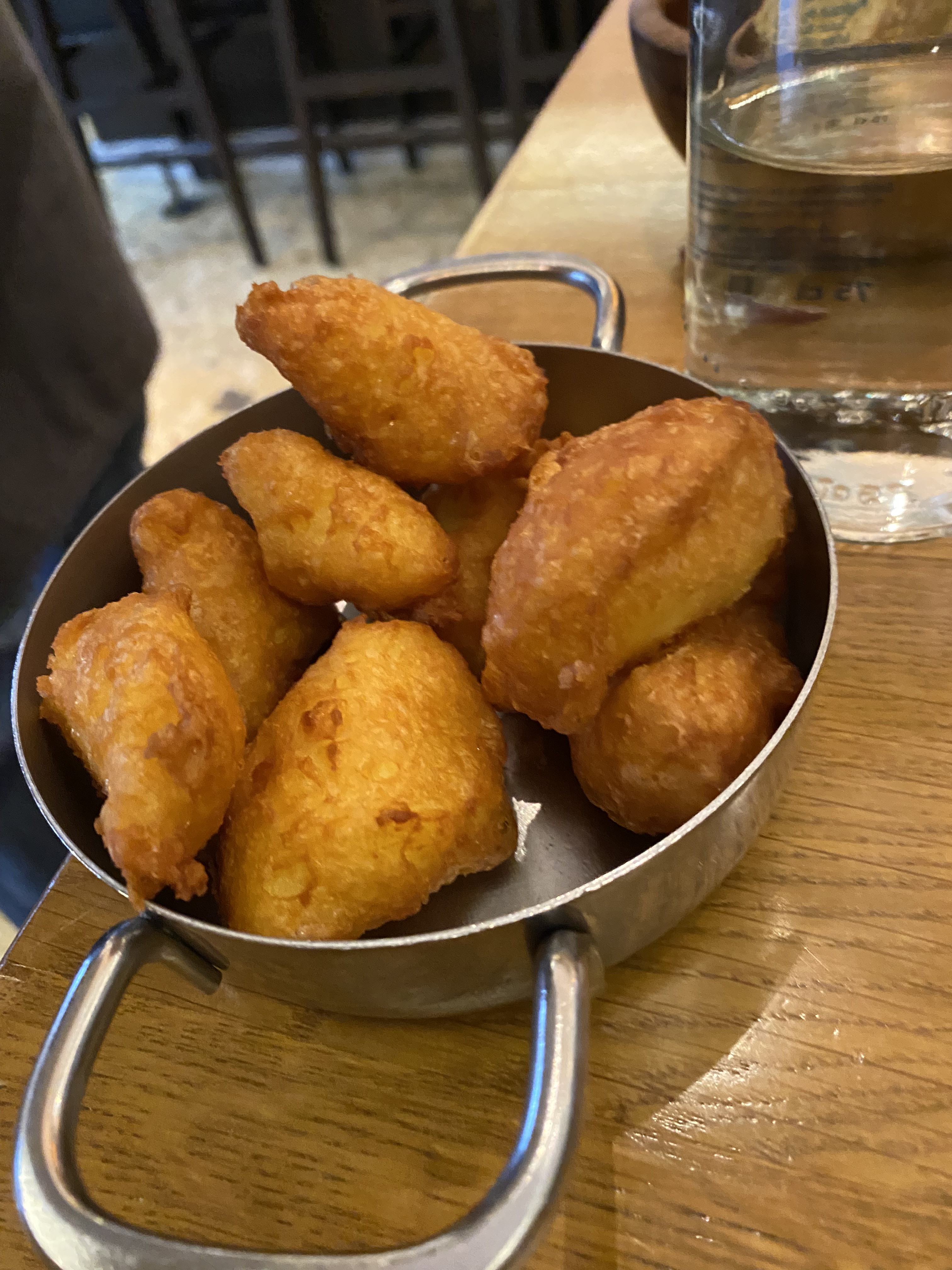 The wonderful Paris restaurant Le MaZanay serves Pommes Dauphine, (pronounced dough-feen) which are crispy potato puffs made by carefully mixing mashed potatoes with savoury choux pastry, the choux pastry creates a light, crispy and fluffy dish. The mixture is formed into quenelle shapes, or rounds that are then gently deep-fried, and they are delightful!