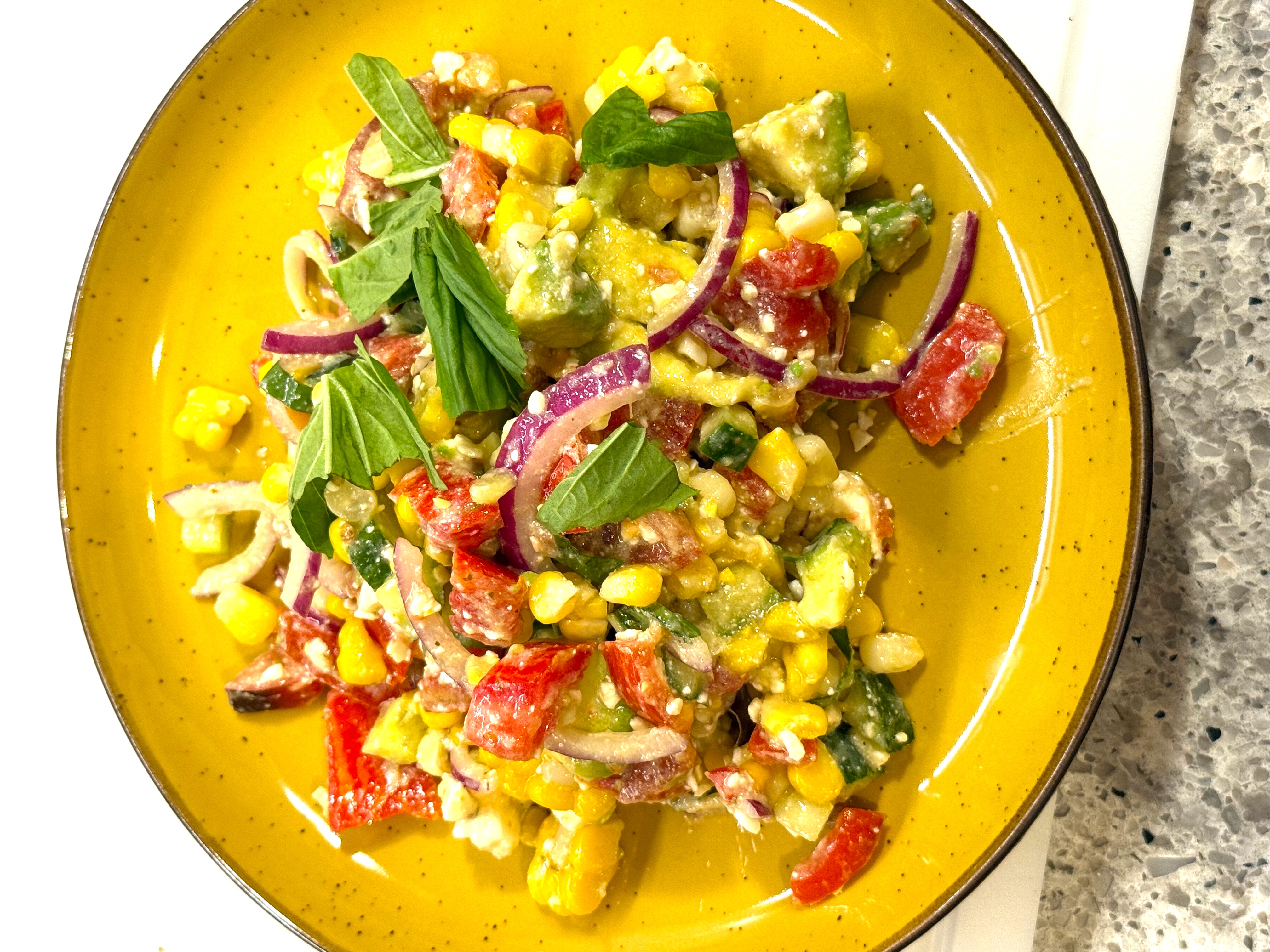 I tried to make use of all the fresh produce at the Union Square Farmers Market in New York City, and it led me to a fresh corn tomato salad as well: