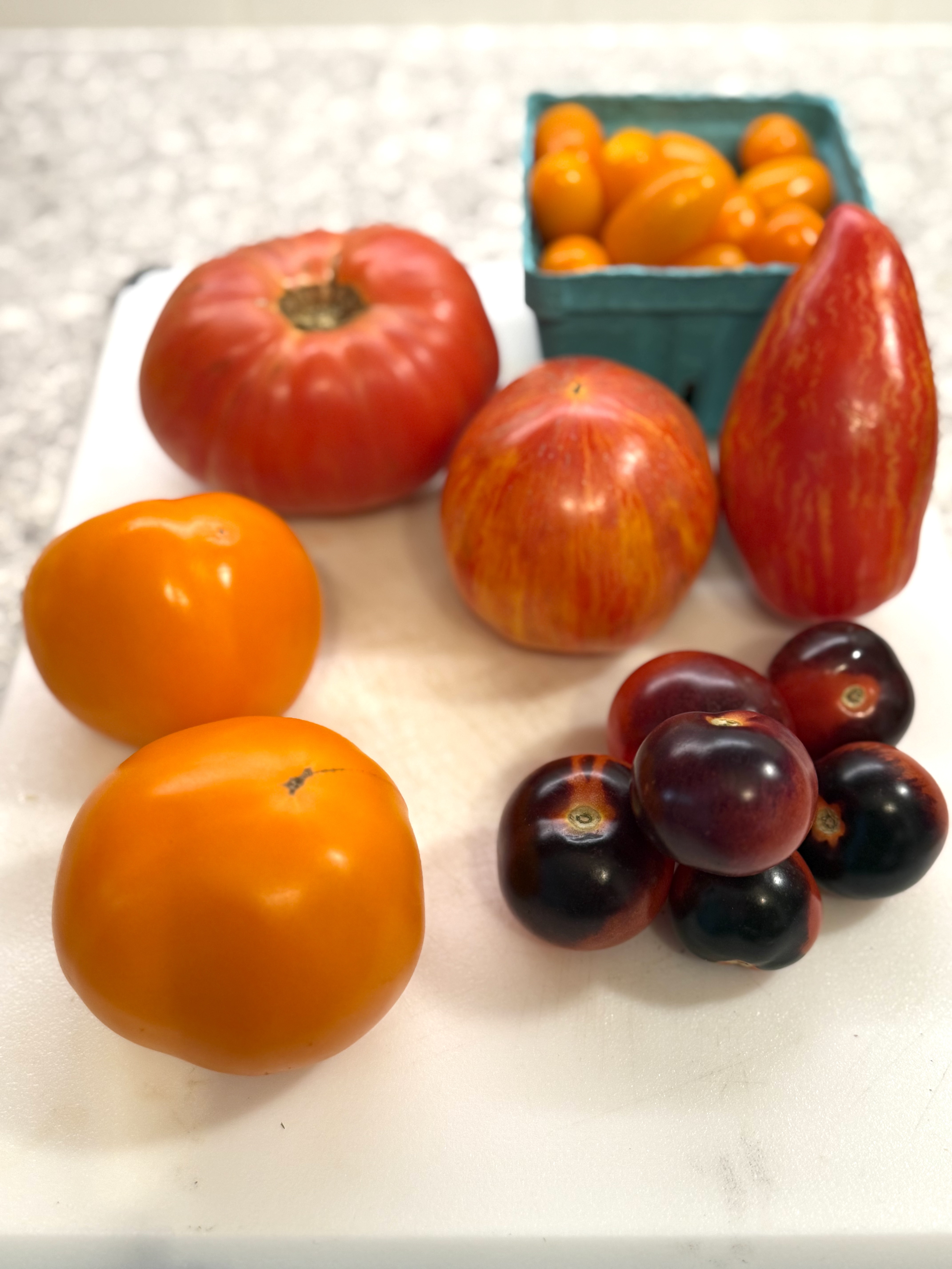 I was on a bit of a “tomato” high, as the local Farmers Market had incredibly unique varieties to play with: