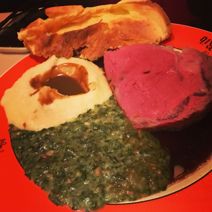 2. Having enjoyed more than a few elegant roast beef dinners in London-town this perchance is a little too ‘American’ for me 🙂 ! A tad too big and too much. A few slices of rare beef, a small baked potato, a flower-pot-shaped small Yorkshire pudding and a good strong horseradish on the side . . . with an elegant dry red . . . more my style methinks . . . but glad you enjoyed 🙂 !
