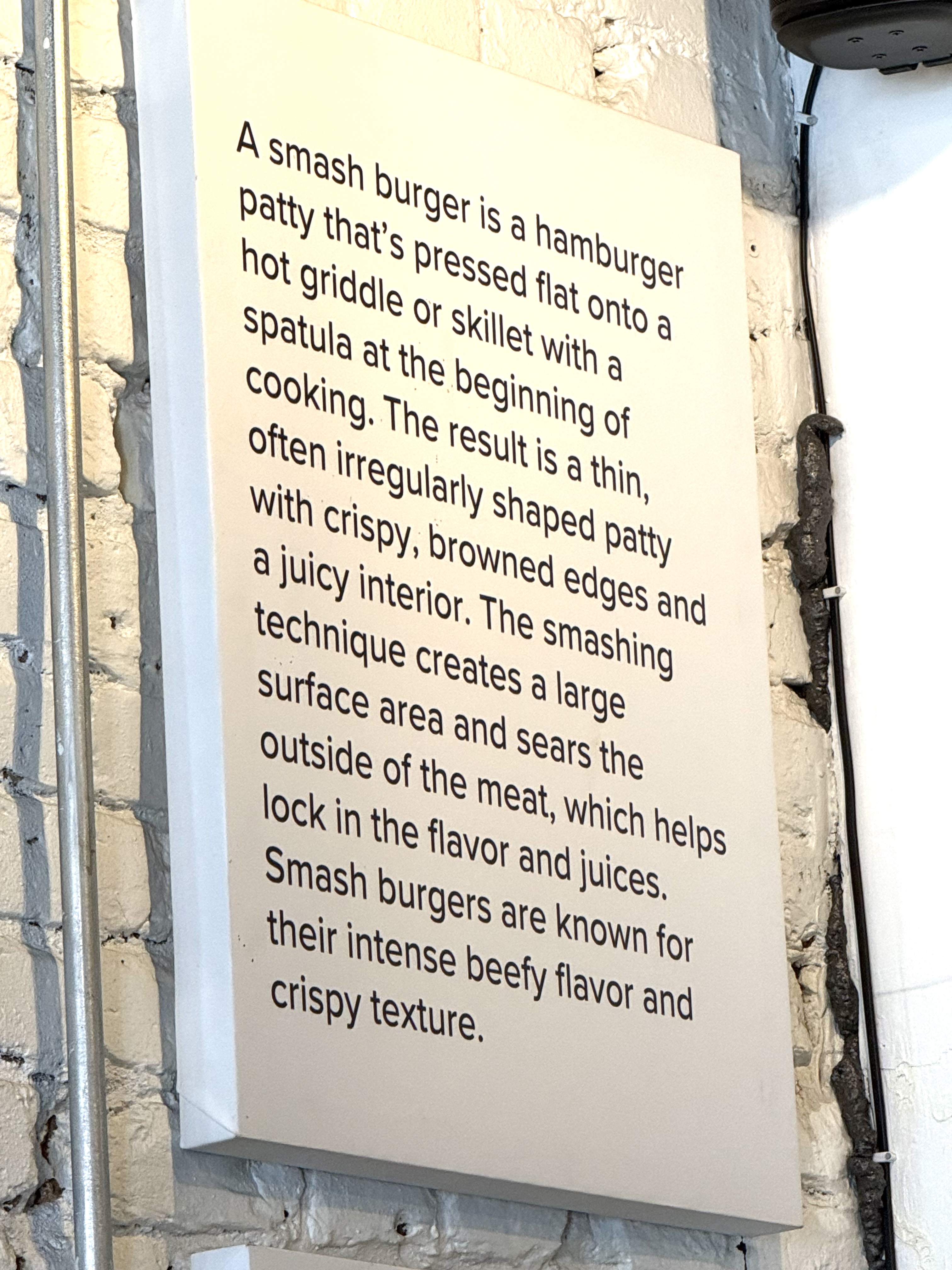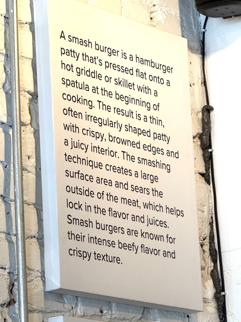 As soon as you enter, you are greeted by their definition of a smash burger: