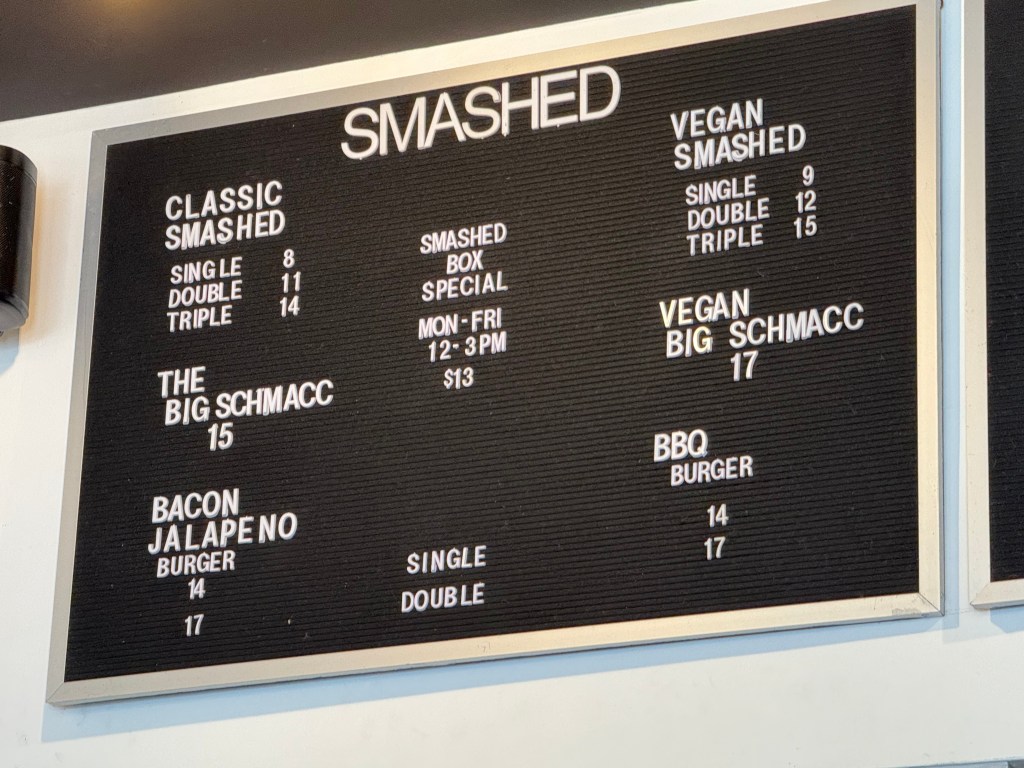 As you can see, along with classic smash burgers – and vegan ones as well – sits the “Big Schmacc” – their take on the iconic McDonald’s sandwich!