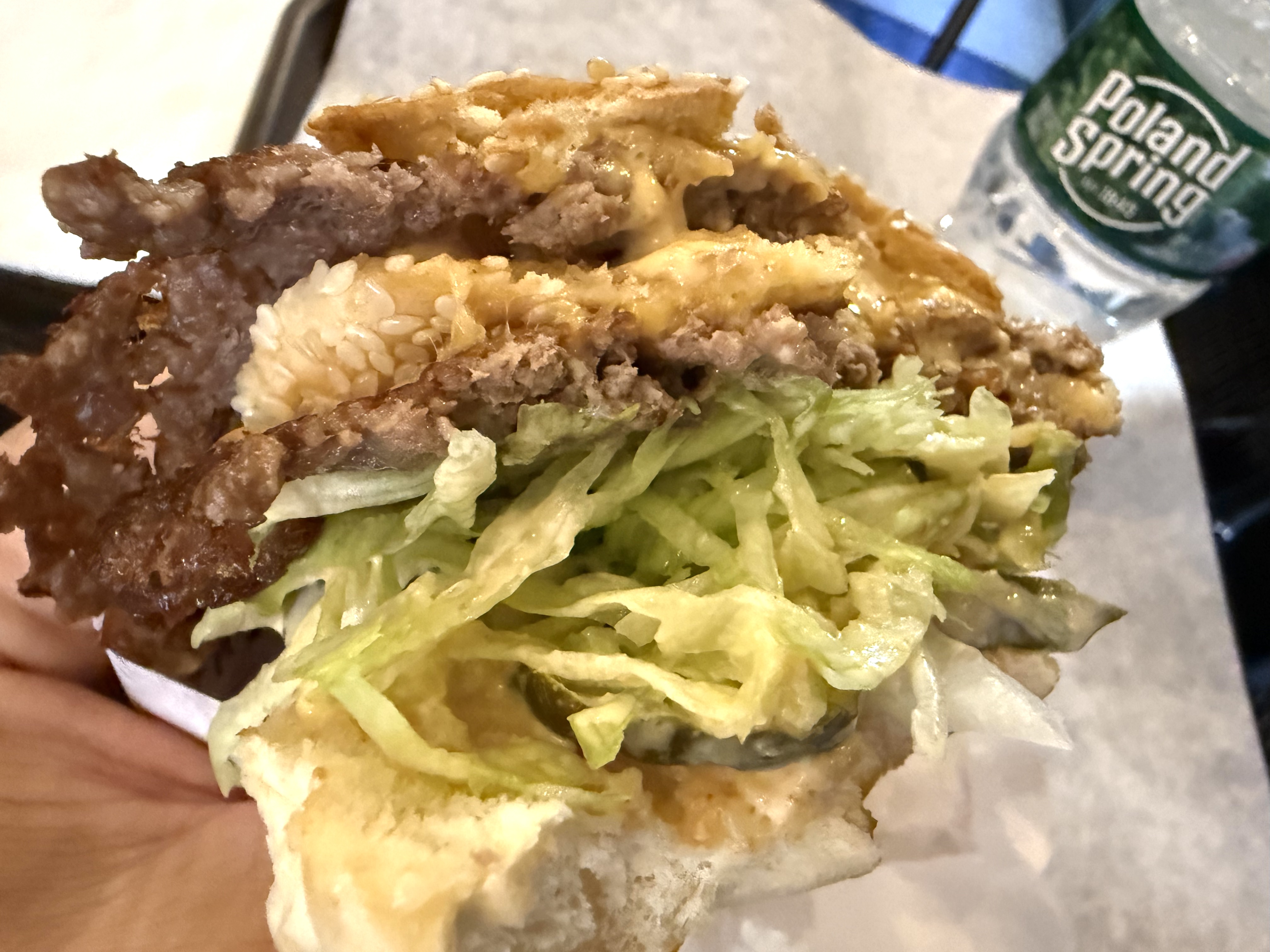 That’s a Big Mac? Well, it sure was – but the “smashed” patties obscured all that was inside! Let me help you get a better view: