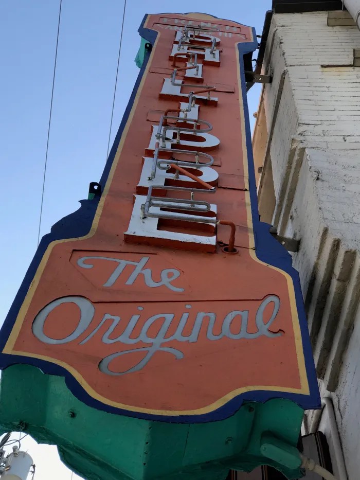 Opened in 1908, Philippe’s, pronounced “Filleep’s,” has changed locations in Los Angeles a few times, but it has not changed its French dip sandwich recipe. There’s sawdust on the floor of the LA restaurant to help absorb spills from these sandwiches, which are sold by the thousands daily.