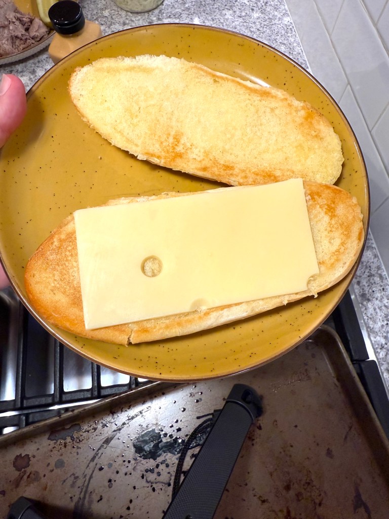 Than add a slice of cheese and set it on a plate…then, it’s time to bring that roast beef to life – here’s the process:
