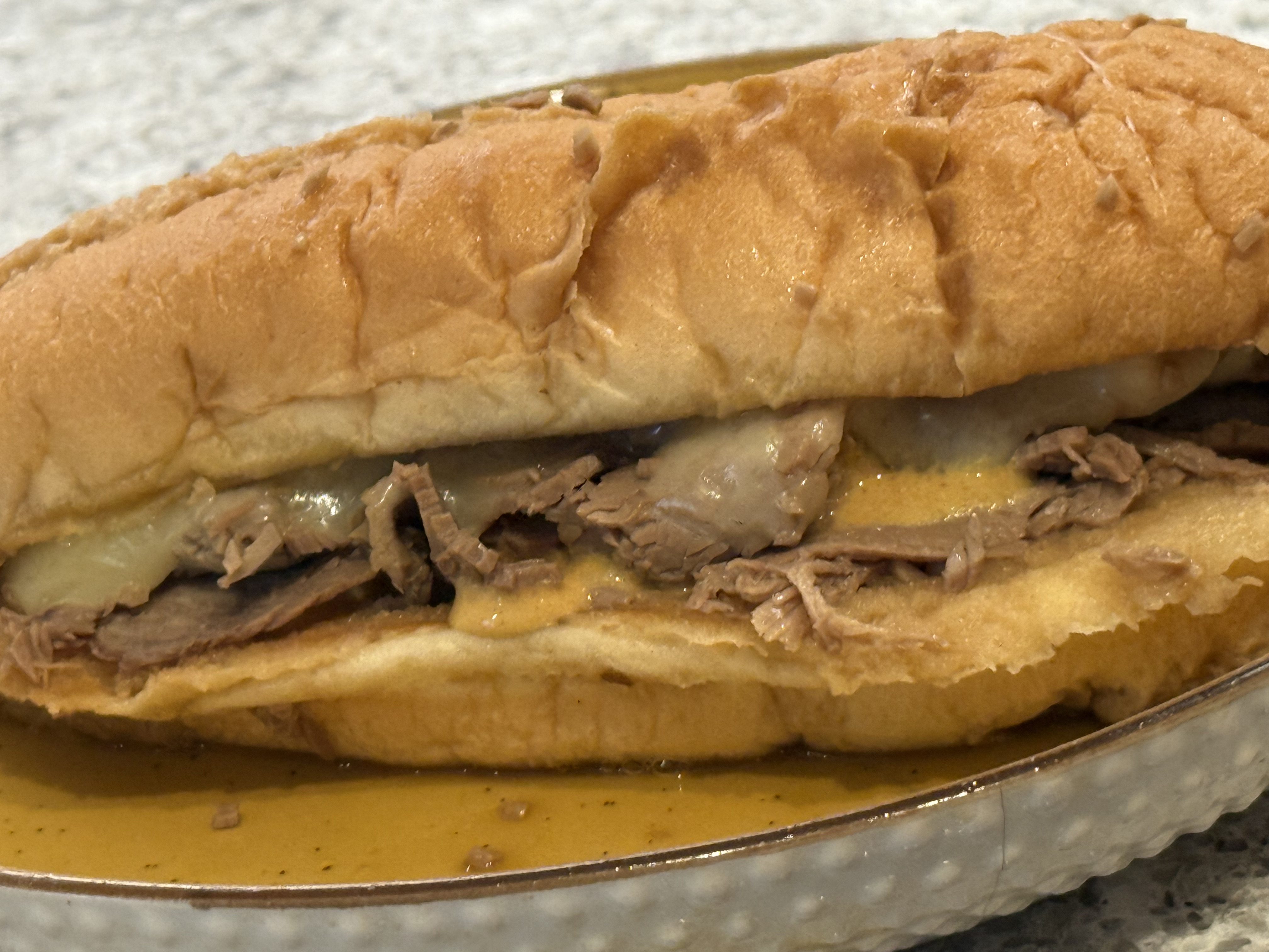 The hot beef melts the cheese nicely, and the au jus makes the sandwich a soggy treat! Here’s my taste test: