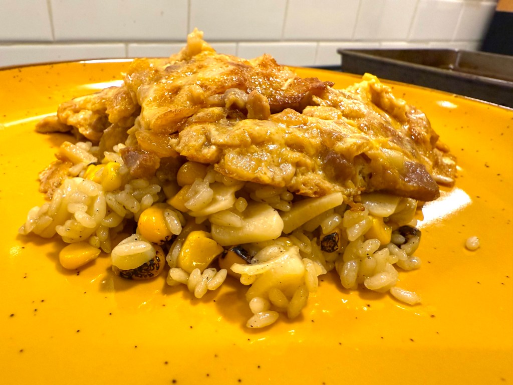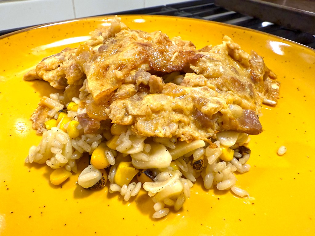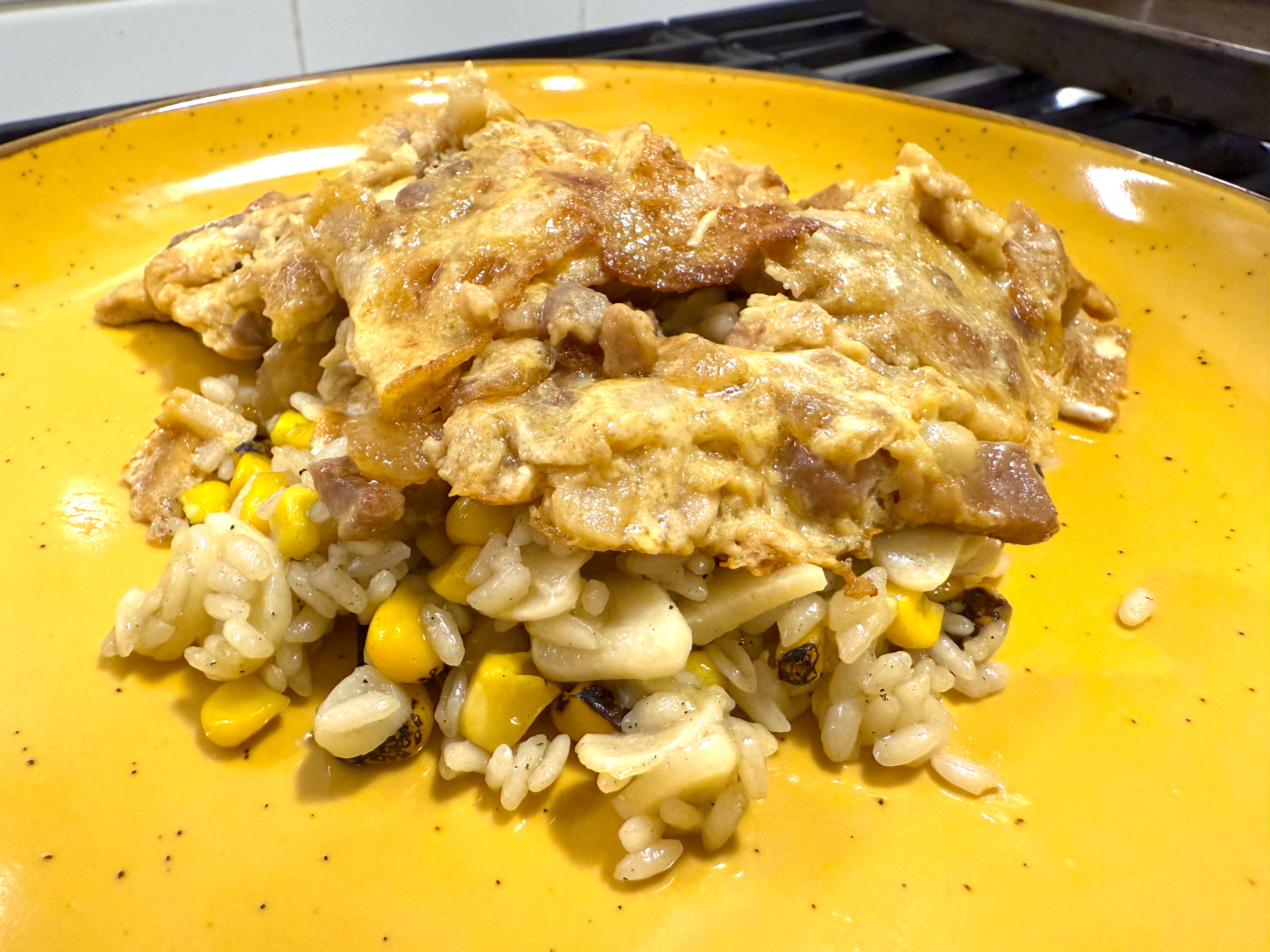 My first time making what is basically an egg omelette over rice, and I loved it!