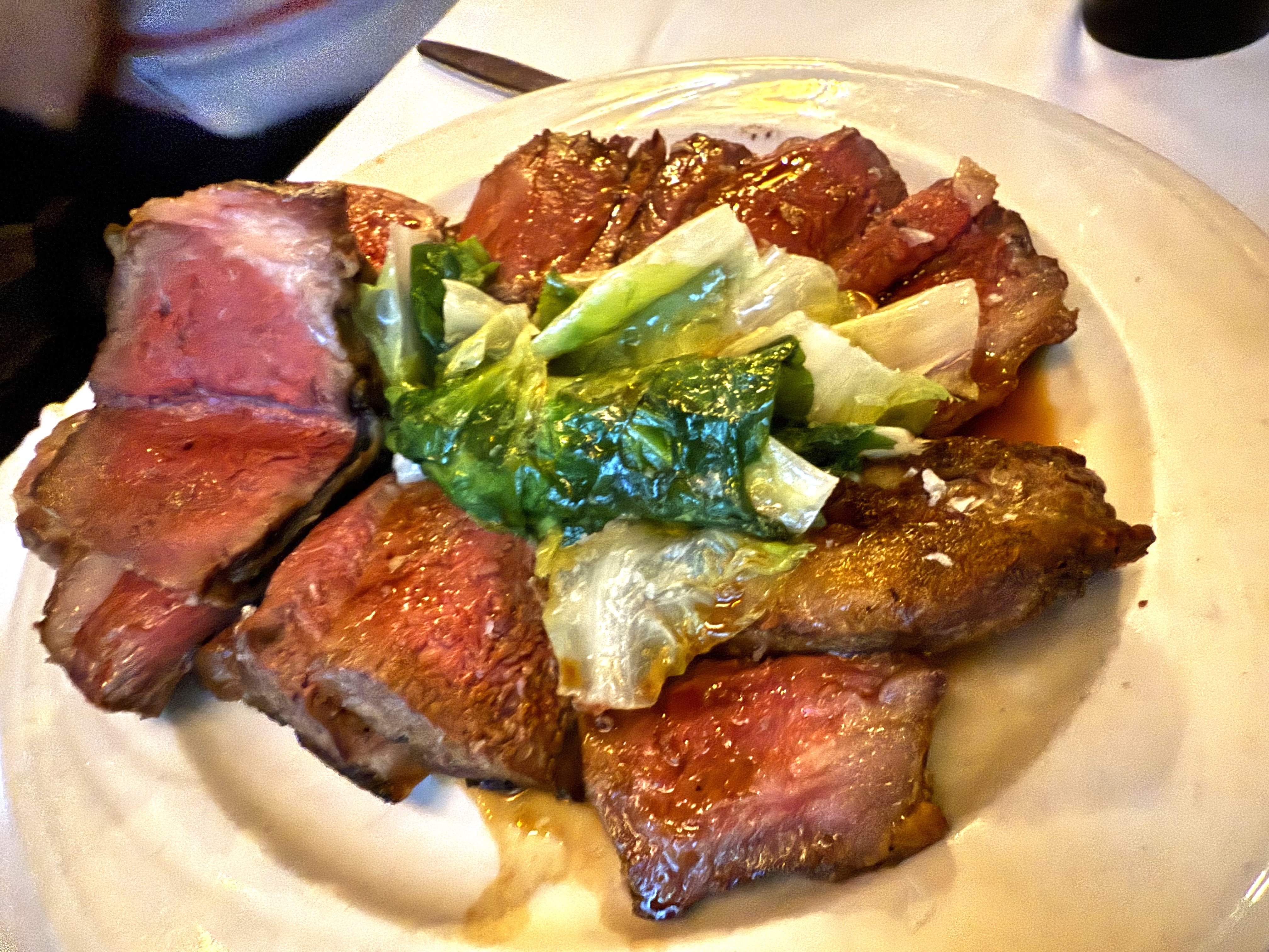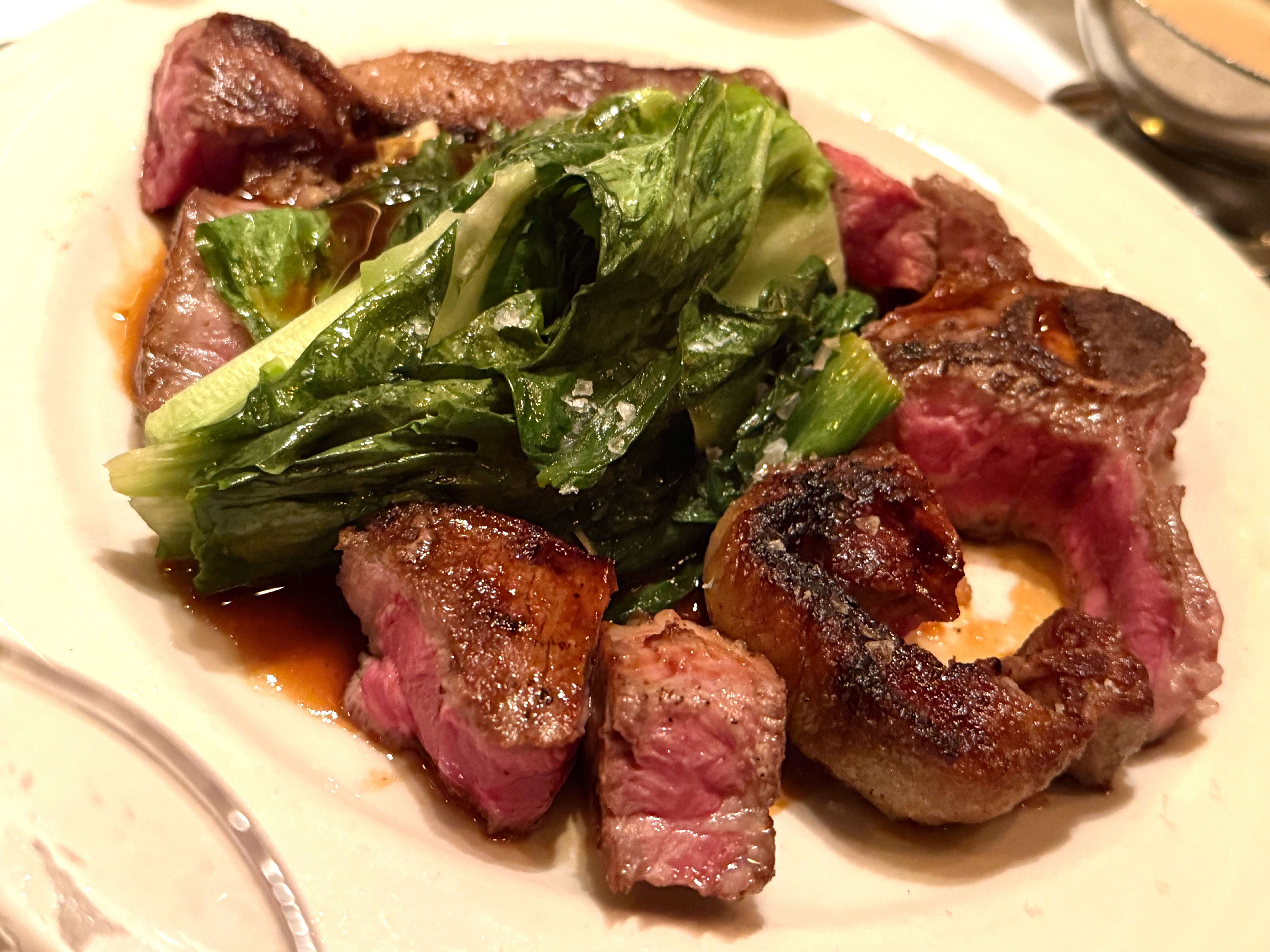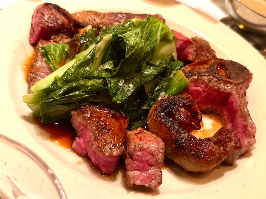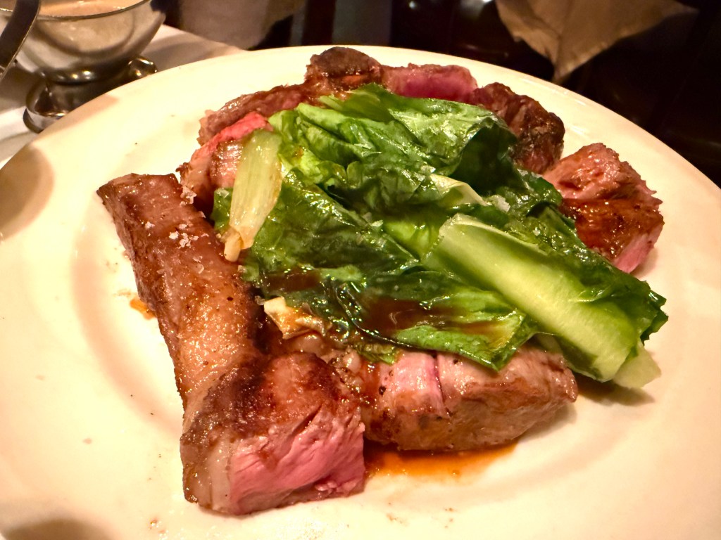 As you can see, the Mutton arrives beautifully medium rare, topped with wilted lettuce – this is the “Taste Of Mutton” sampler and for $35 it’s a bargain! We ordered a New York Sirloin to go with it: