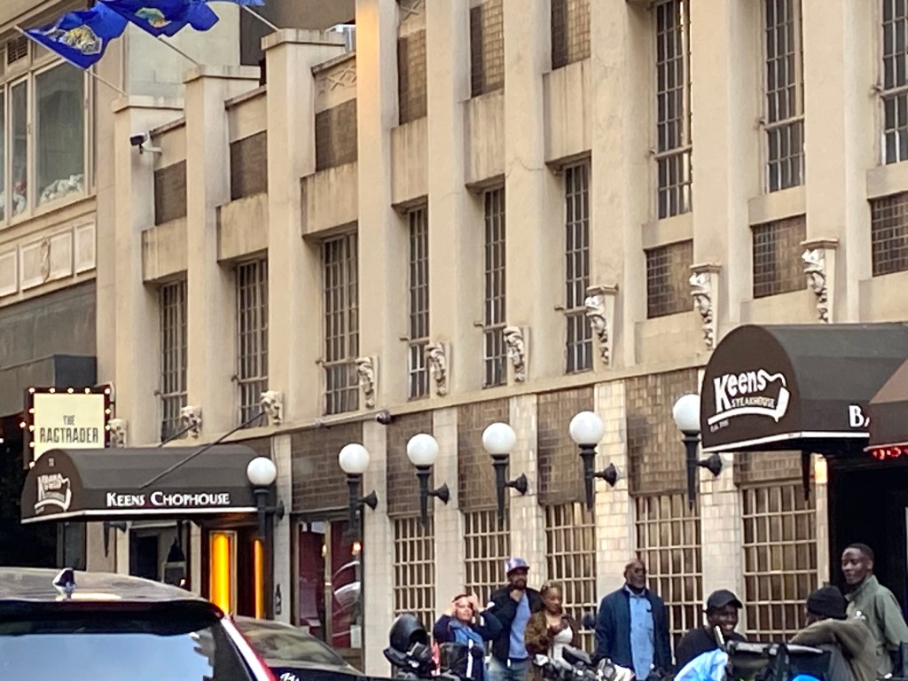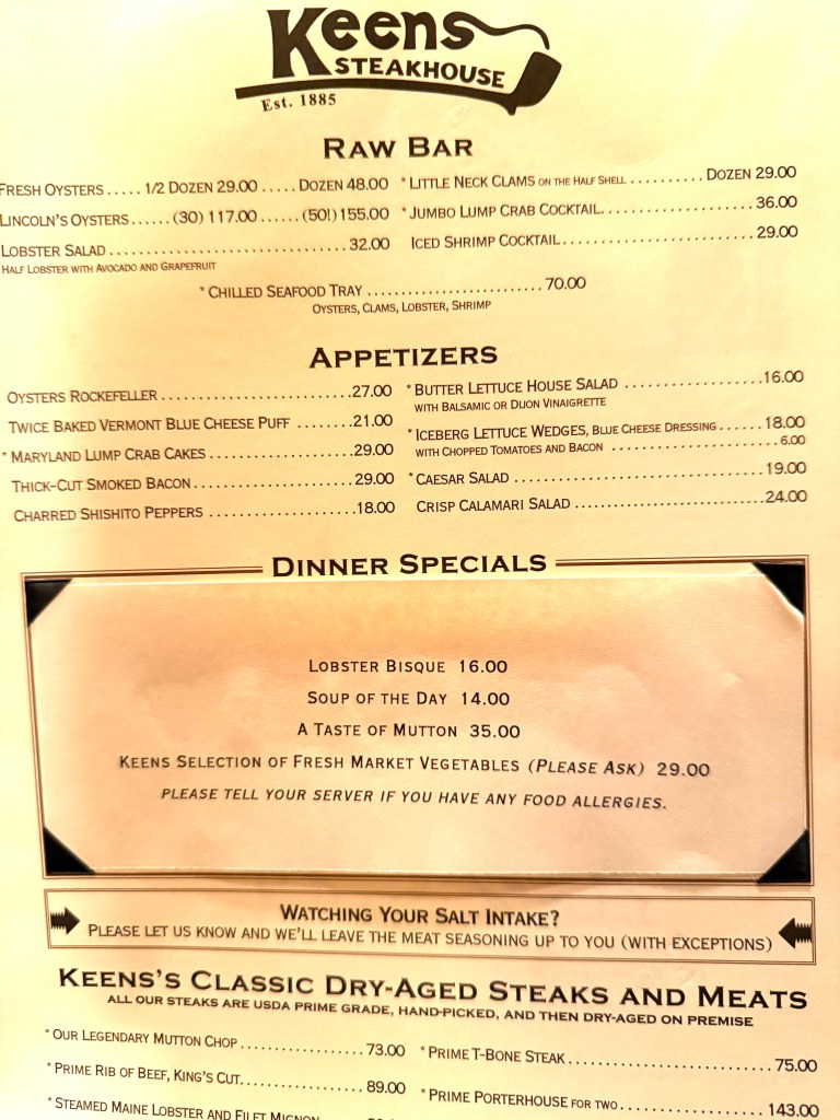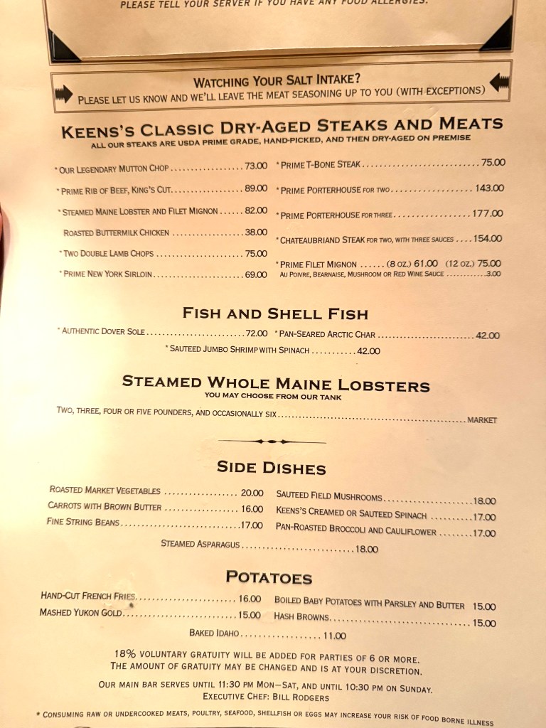 By the way, it’s easy to be distracted at Keen’s: for example, their “coat of arms is on the wall along with a lot of classic posters of a bygone era of New York: