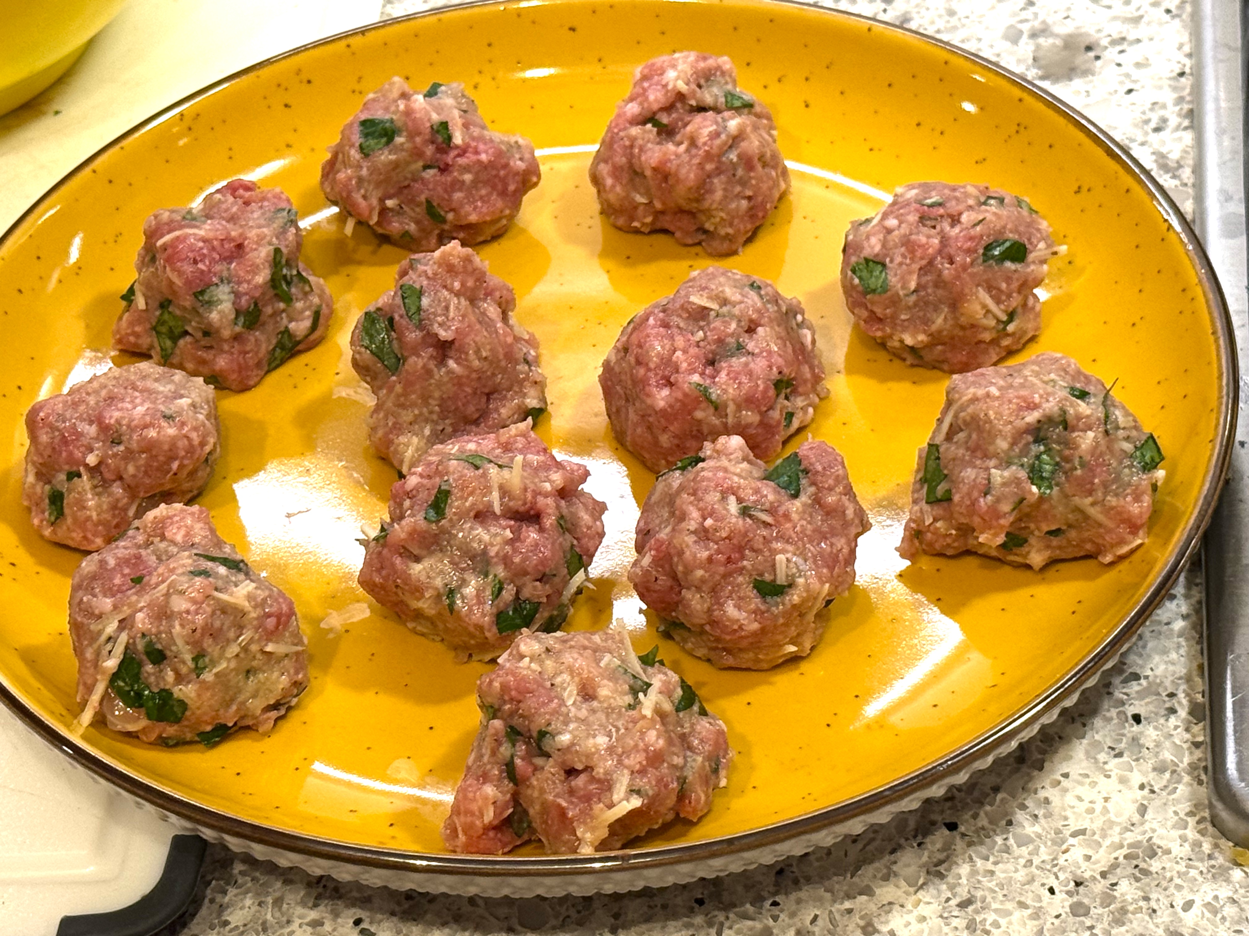 Combine all in single bowl and have some fun making golf ball sized meatballs!