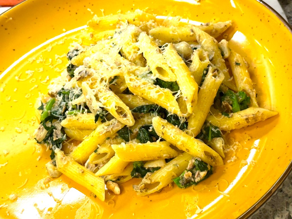 There’s the dish, and it was really delicious! It’s from Pasta Veloce, by Frances Mayes, and Susan Wyler – Mayes posted it on her terrific Substack.