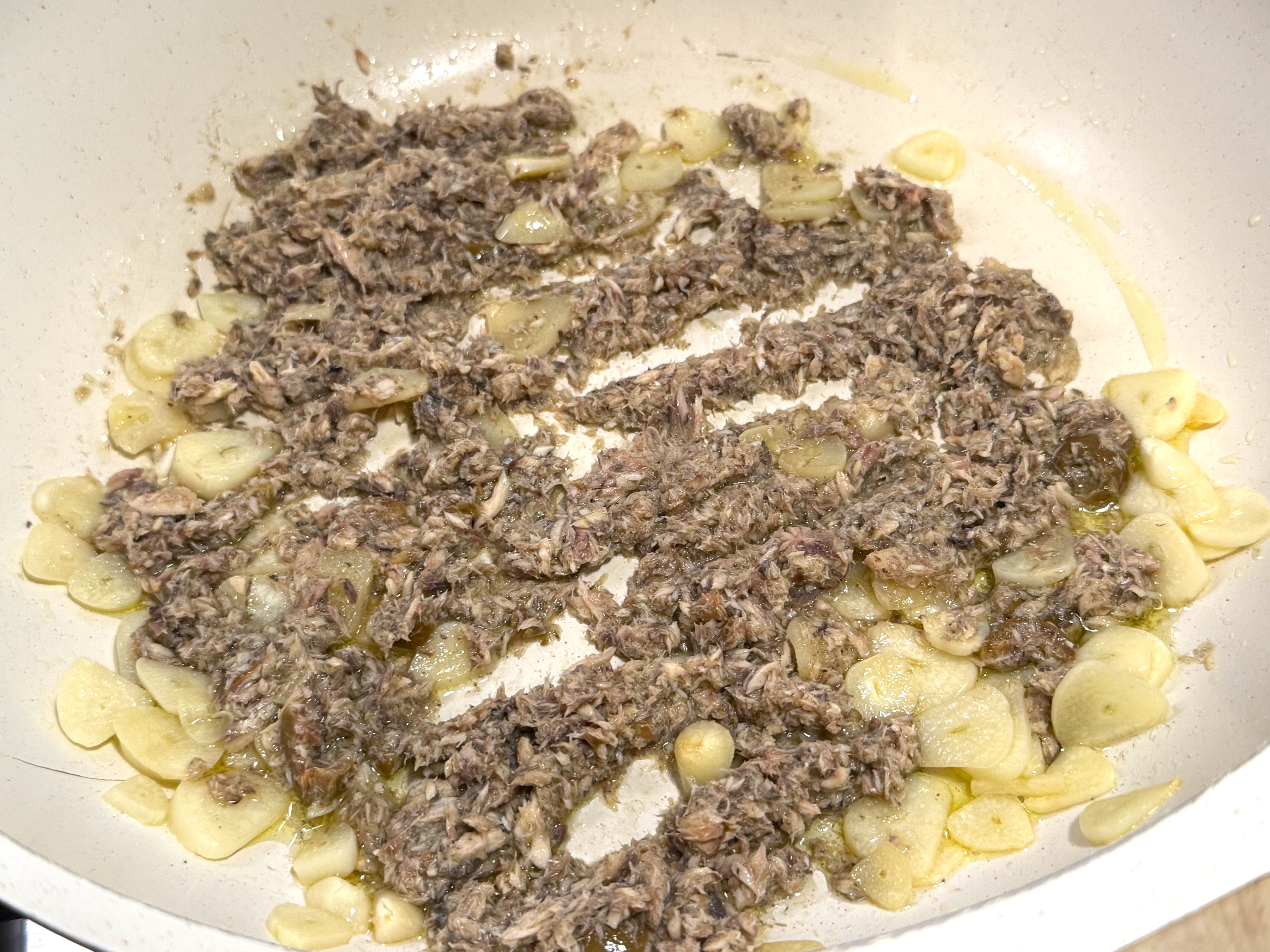 Here’s where I deviated from the recipe: I couldn’t find Anchovy paste but did find a tin of fresh Anchovies, so I just mashed them up and used them that way!