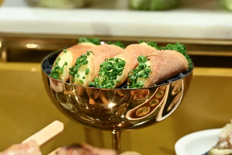 - New Additions: This year, Chef Puck is adding an extensive sushi/salmon station, along with bite sized Confit Duck Potstickers, and Crab Chawanmushi too.