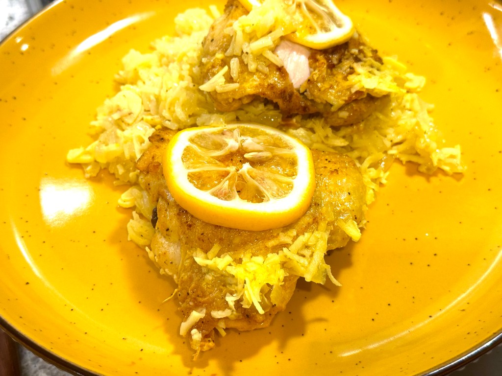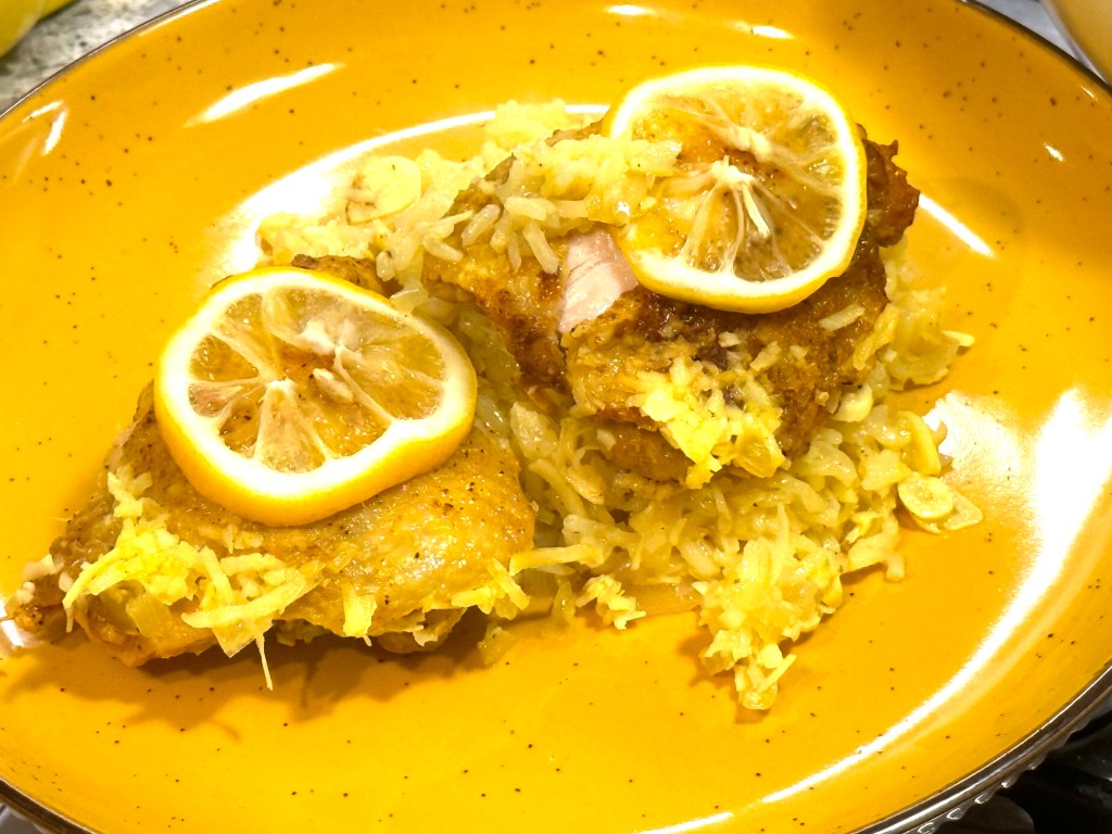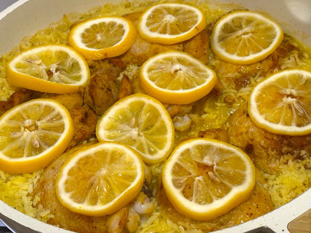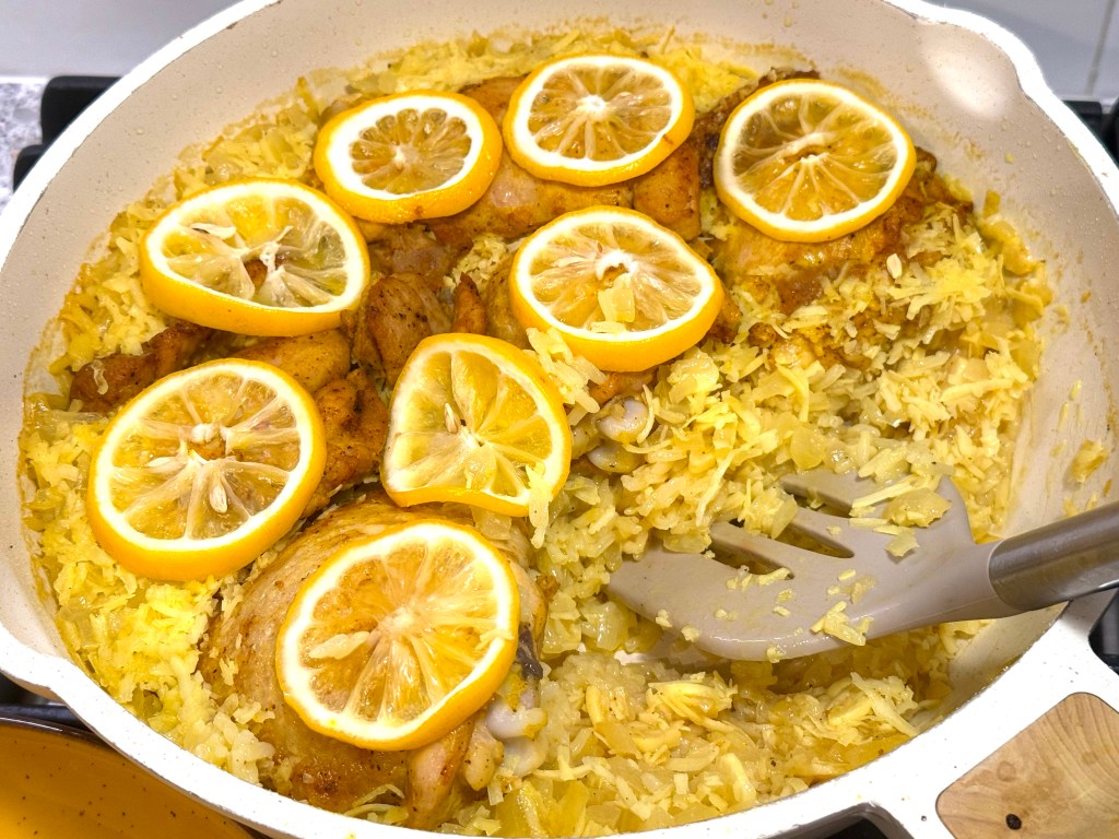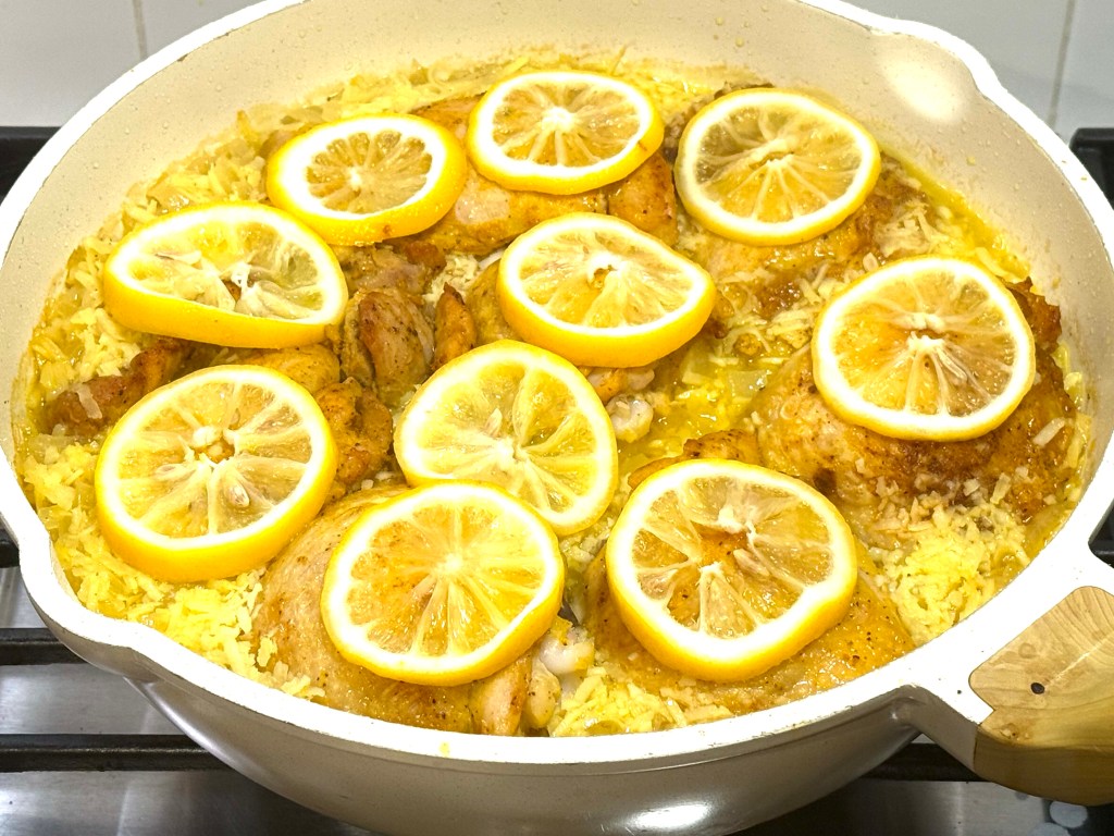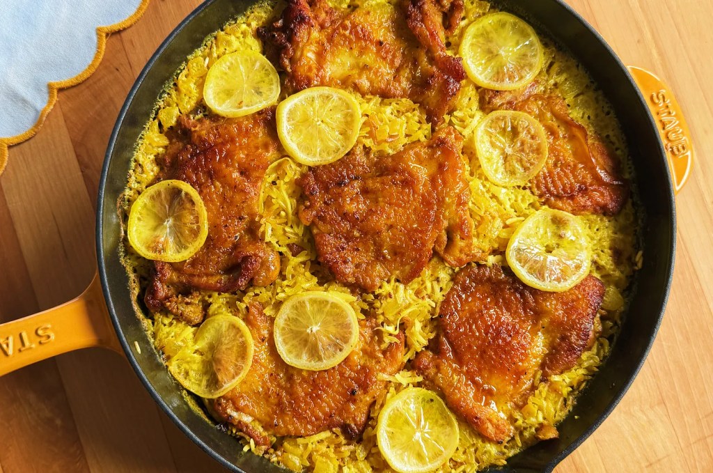 “Looking for a weeknight dinner that won’t turn your kitchen upside down? This lemony chicken and rice delivers a satisfying meal with the least amount of dishes. Juicy chicken, coconutty rice and thin lemon slices are cooked together in a large skillet for a sunny, light dinner that promises comfort in each bite.”