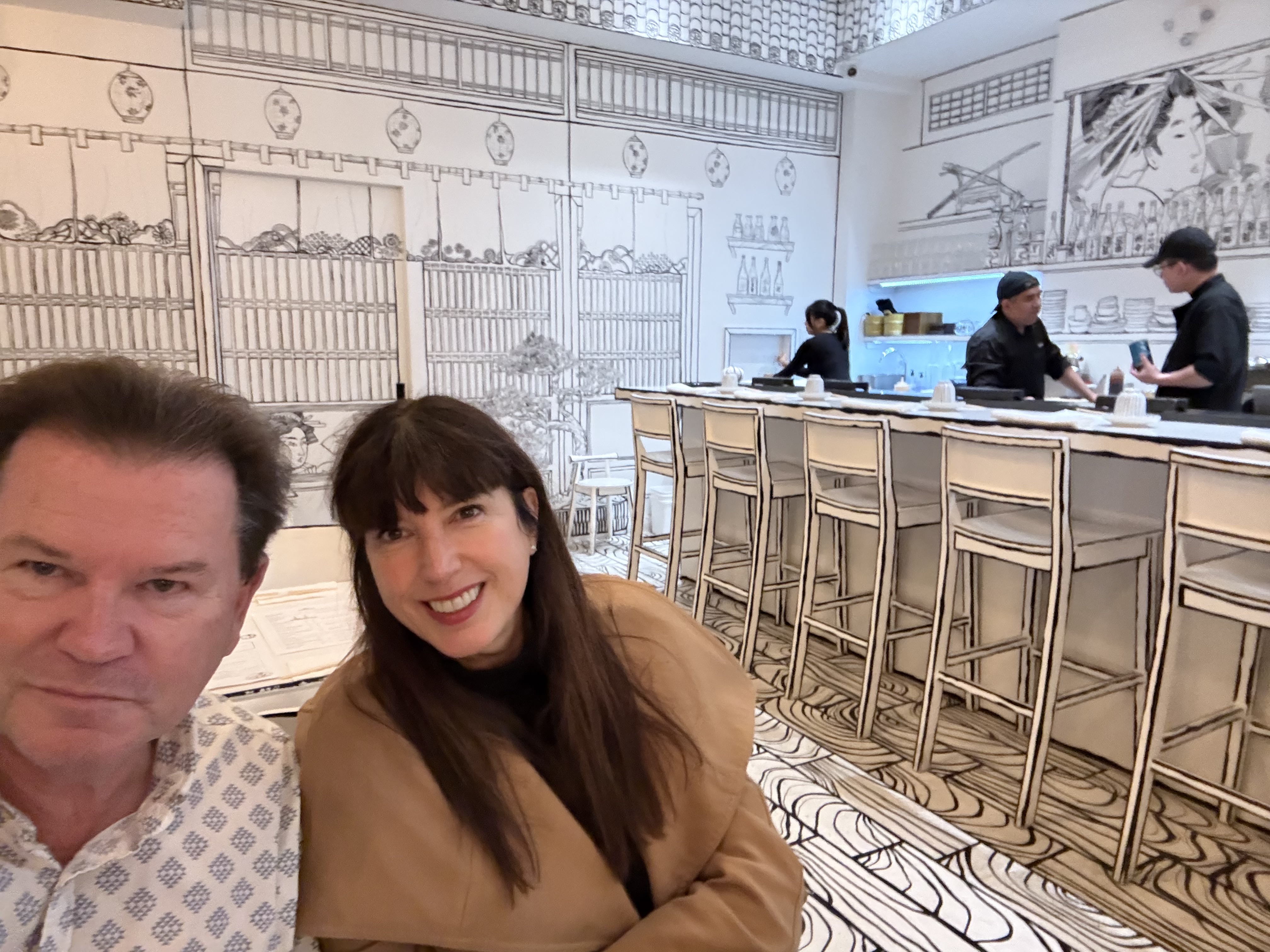 It really does look like a 2D drawing, with only the warm of the ceiling lighting keeping it from a harsh black-n-white setting! Alex and I got a selfie at the table: